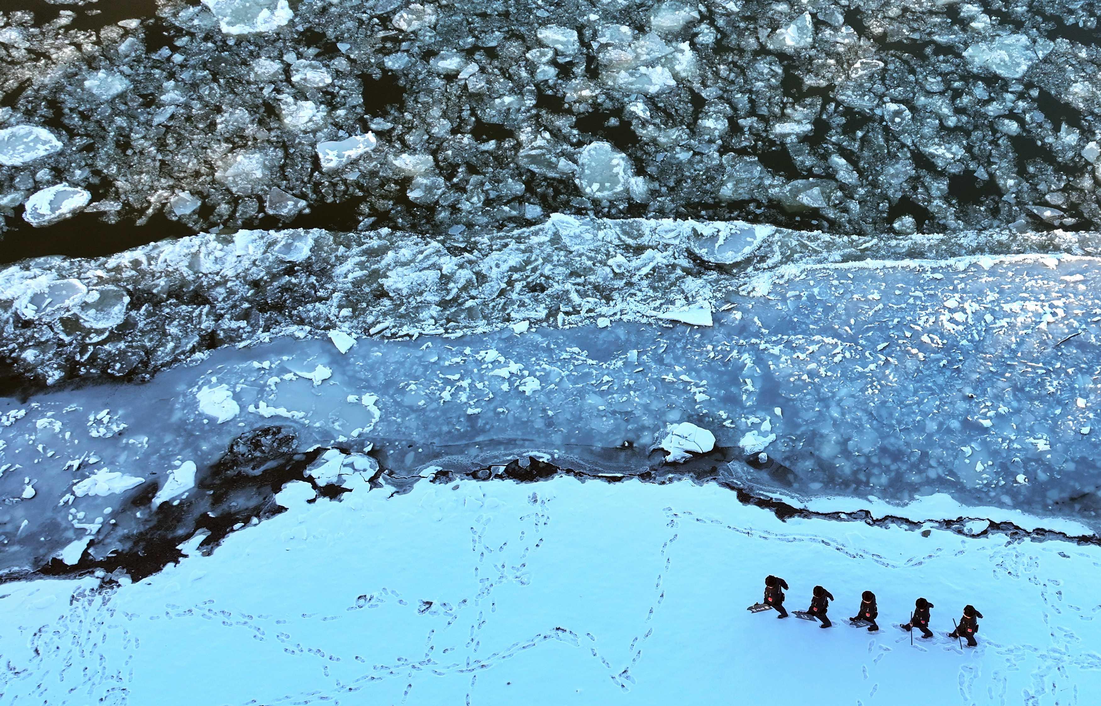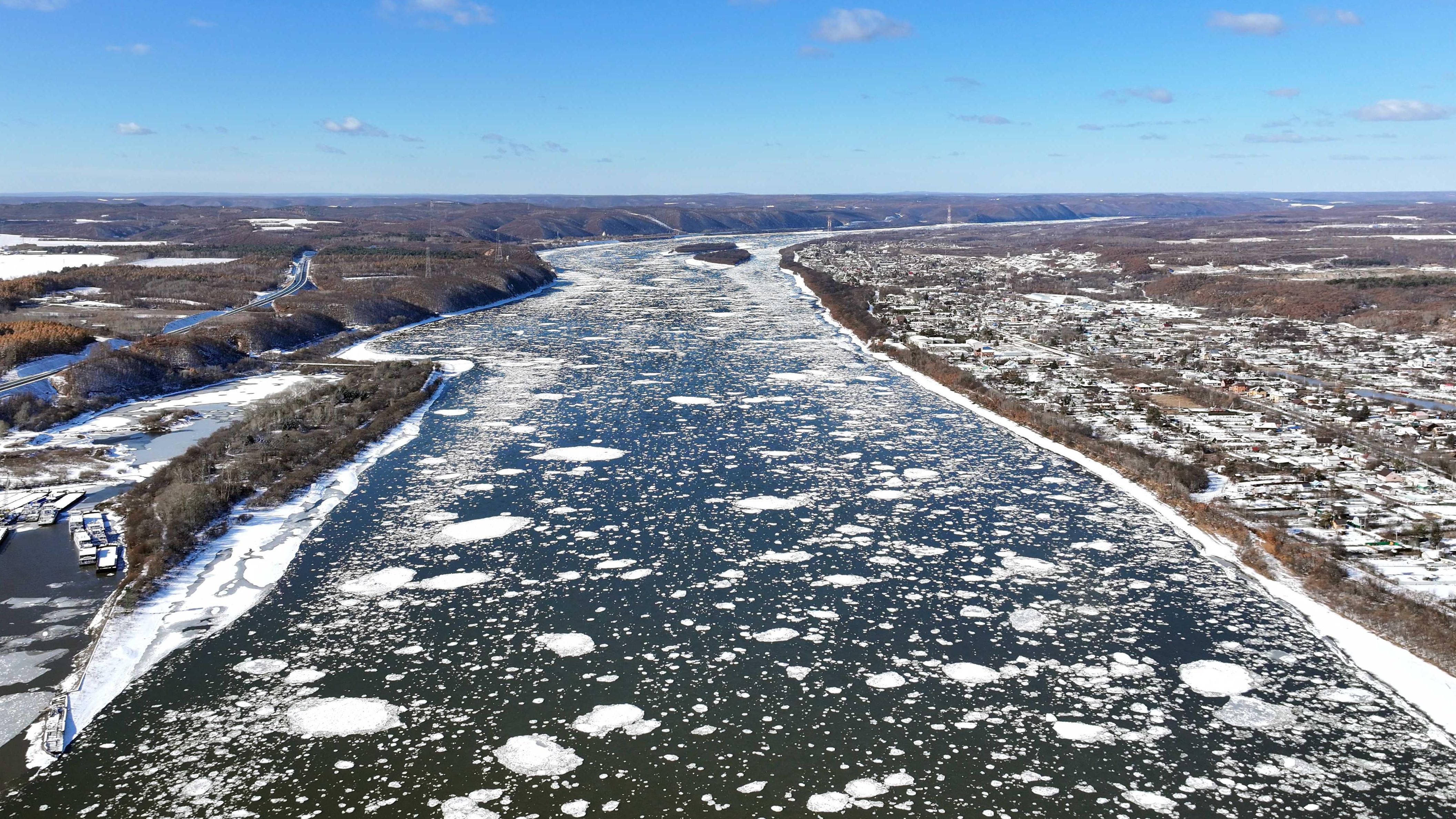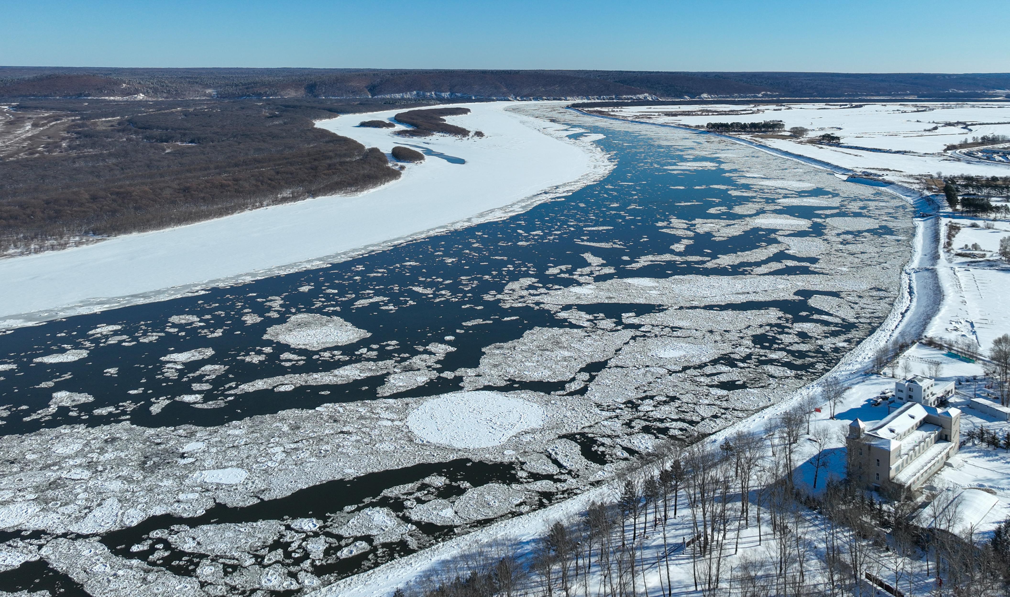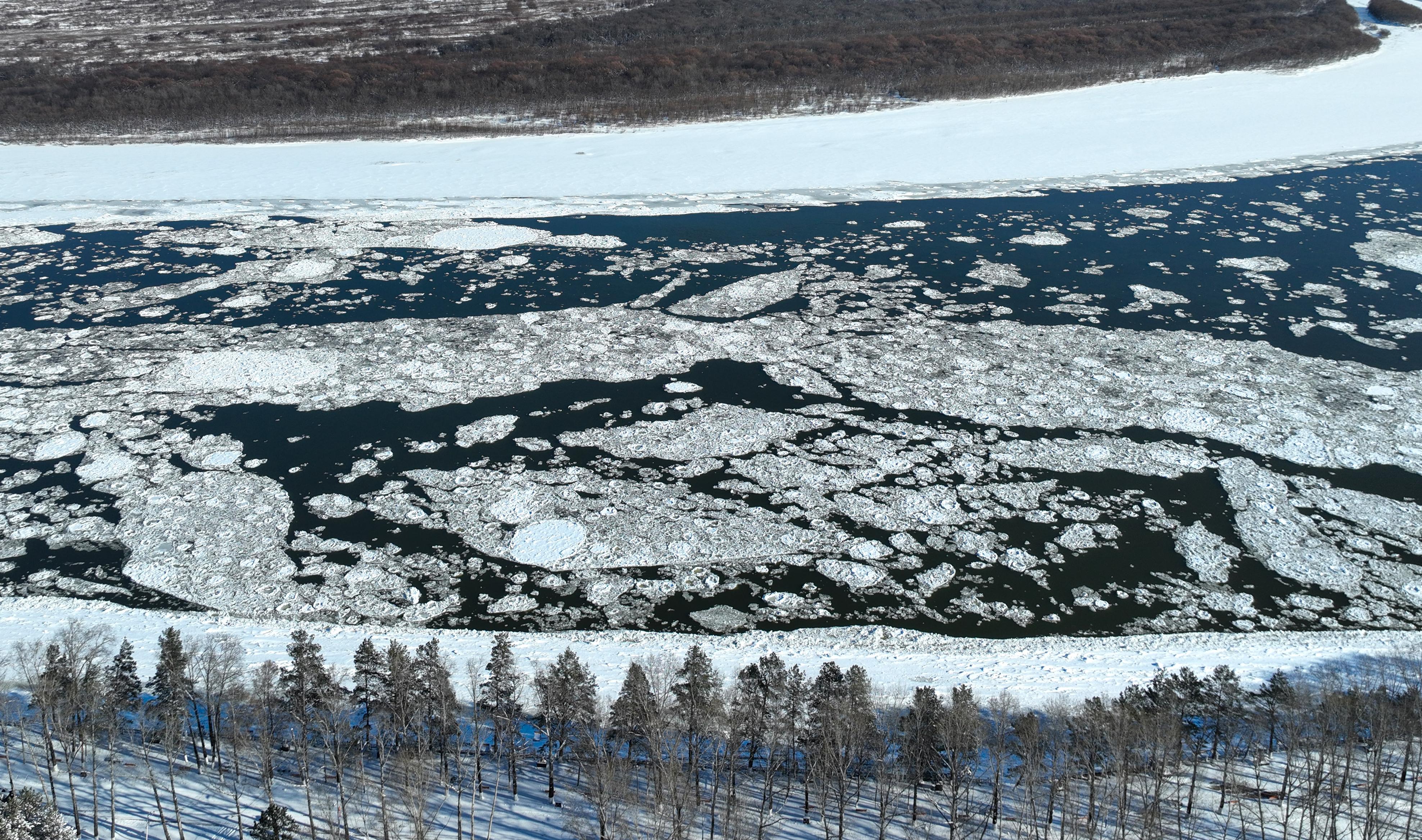 近日,黑龙江干流各江段陆续进入流冰期,江面上形成壮观的“跑冰排”景观。