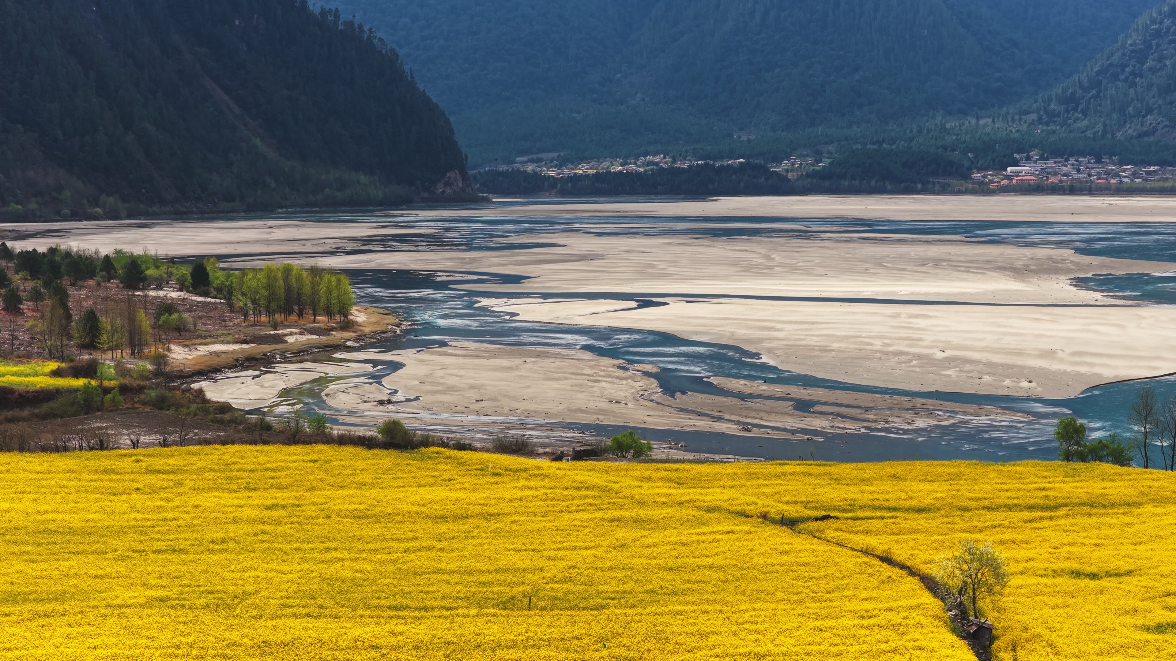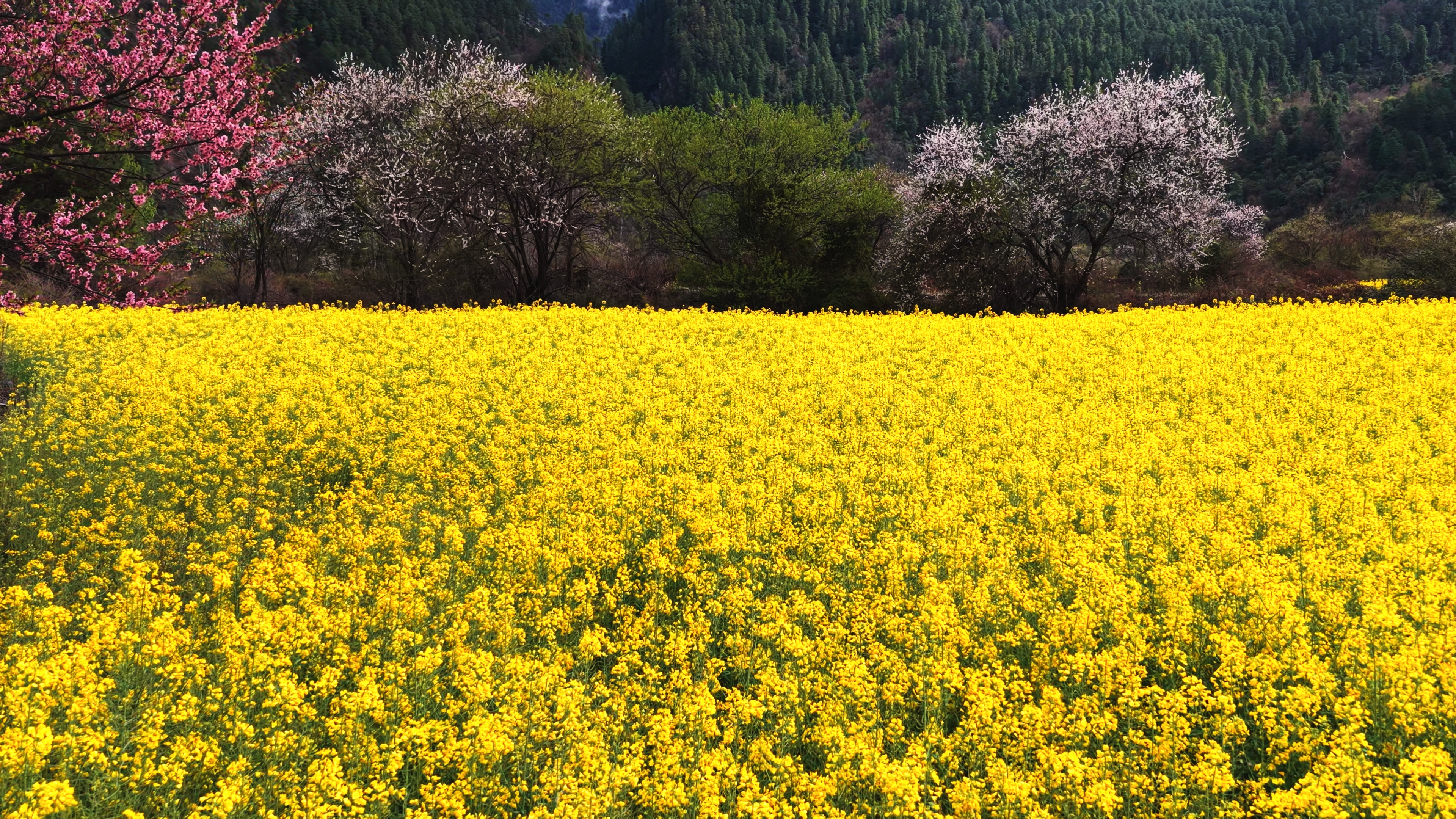 西藏波密:花开易贡春正浓 2026-03-23 来源: 新华社 易贡油菜花田位于西藏林芝市波密县易贡乡。近期,连片油菜花竞相开放,桃花也缀满枝头,与远山相互映衬,构成一幅高原田园画卷。新华社记者 普布次仁 摄