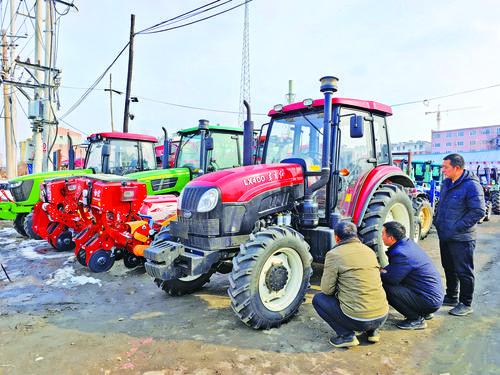 备足农机保春耕,筑牢根基促丰收。安图县各经销点新型高效农机备货全面就绪、供应充足,大马力、智能化农机成为今年春耕生产主力机型,70马力以上拖拉机、带开垦刀的旋耕机销量持续领跑。农户购机需求正从“能用”向“好用、高效”加快升级,农机装备现代化水平稳步提升。图为松江镇农机销售点。