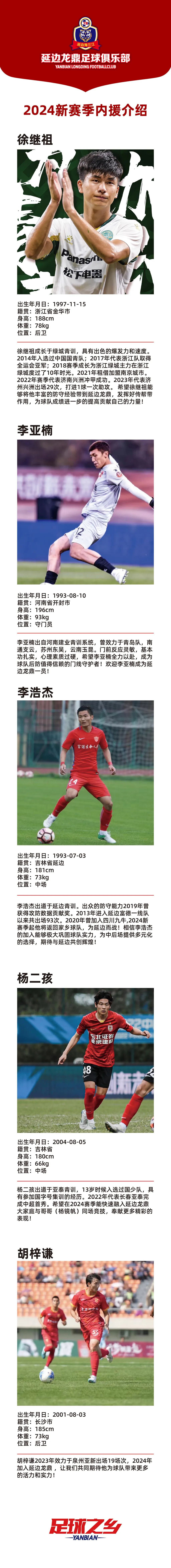 中甲联赛2024年新赛季,延边龙鼎足球俱乐部官宣2024赛季引援信息及大名单。