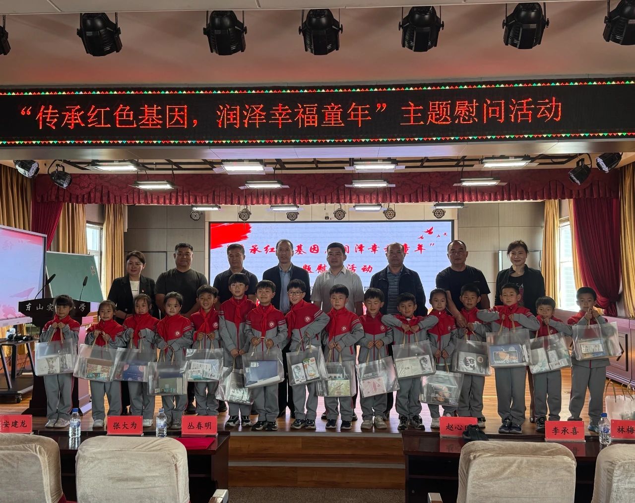 为庆祝第75个“六一”国际儿童节,5月28日,州关爱退役军人和军属烈属基金会与龙井市民政和退役军人事务局,在龙井市东山实验小学校举办“传承红色基因,润泽幸福童年”主题慰问活动,向该校98名现役及退役军人子女送上节日祝福与亲切关怀。