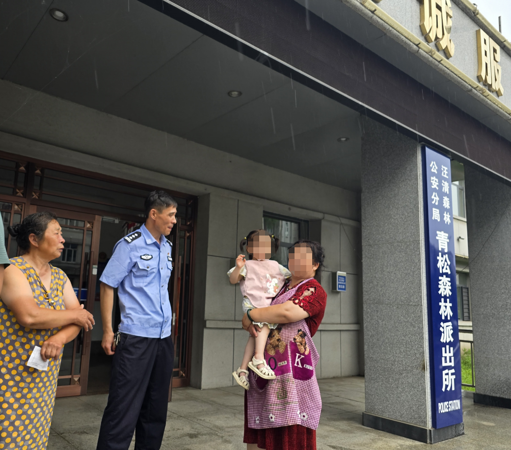 7月27日傍晚,天空中飘落着小雨,两名热心群众抱着一个3岁的女孩来到省公安厅森林公安局汪清森林公安分局青松森林派出所值班室,称在天桥岭镇青松小区街道上遇到这个女童在雨中哭泣,求助民警帮助女童找到家人。