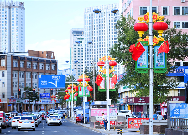 国庆临近,延吉的大街小巷都挂起了五星红旗。放眼望去,“中国红”布满街头,国庆氛围浓厚热烈。
