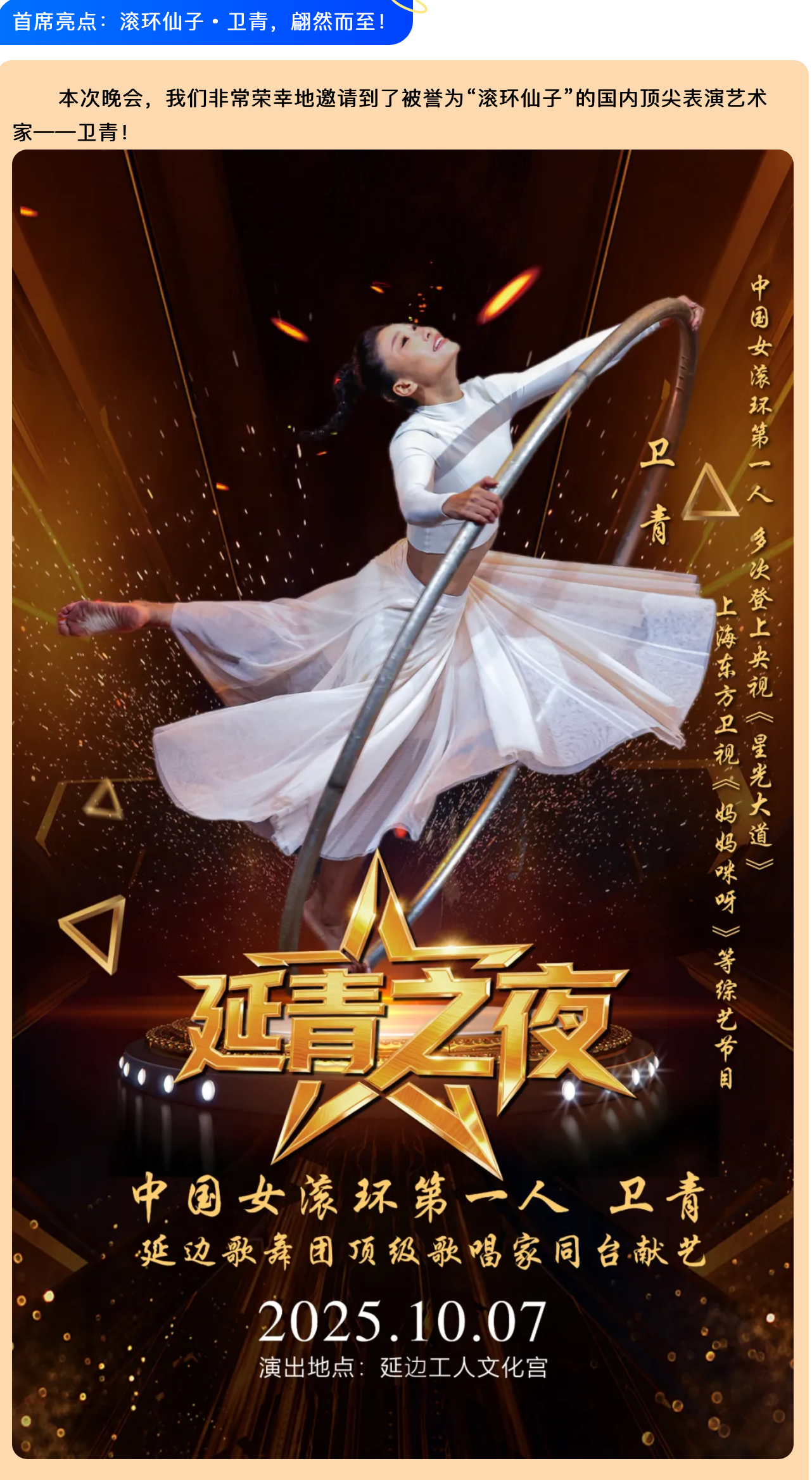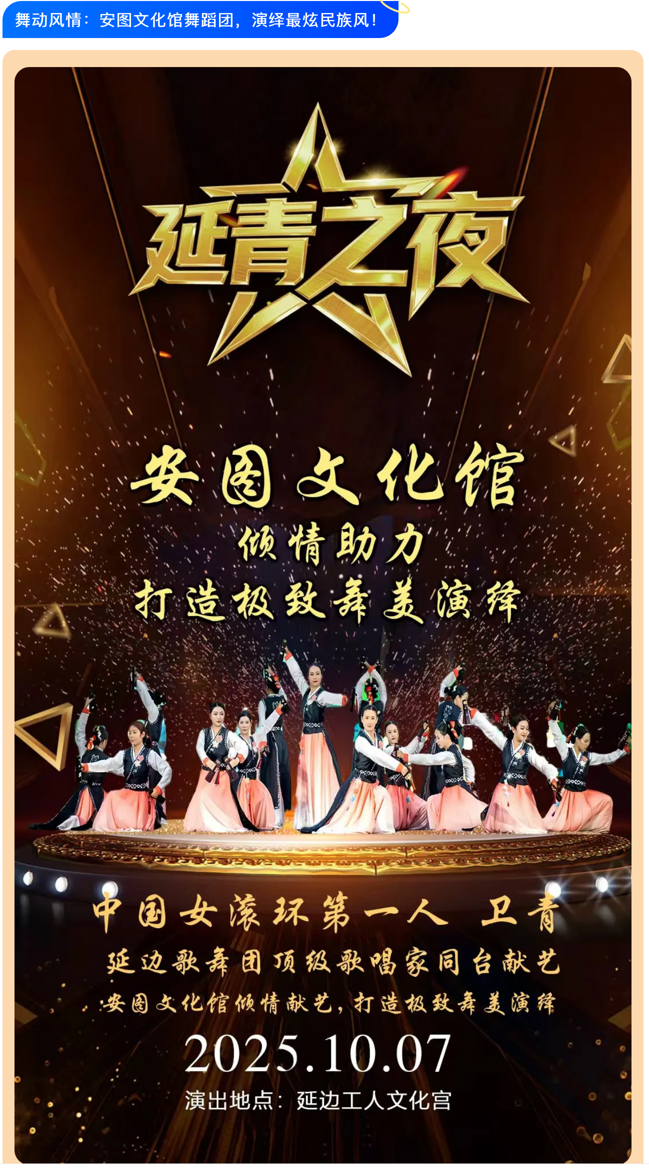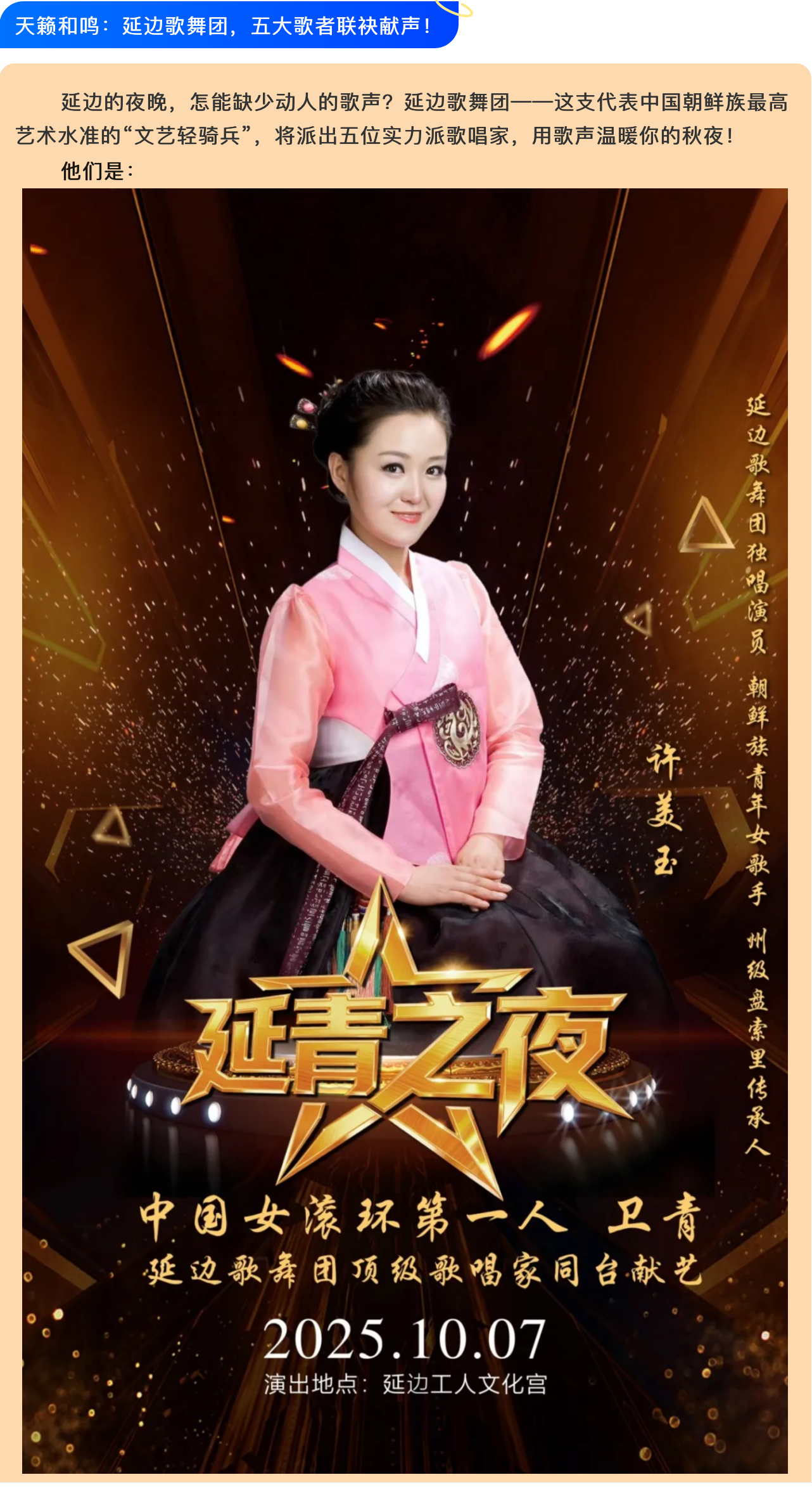10月7日震撼来袭!星光大道滚环仙子卫青与人气歌者,共绘延边艺术星空!