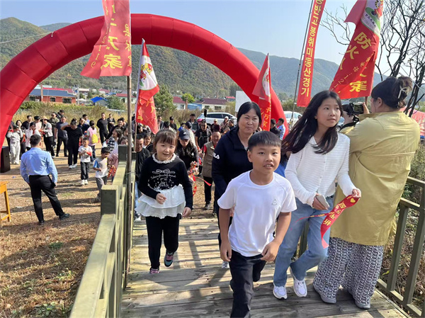 在趣味登山赛现场,磨盘山沿途风光秀丽,层林尽染的景致让参赛者心旷神怡。活动创新性地融入了“寻宝游戏”环节,参赛者们在攀登过程中不仅能享受运动的快乐,还能开启“寻宝”之旅,在探索中增添了登山的趣味性与互动性。同时,主办方为每位参赛者准备了祈福条,大家在登顶后将写满心愿的祈福条挂在山间树上,以独特的方式寄托对家国的美好祝福。