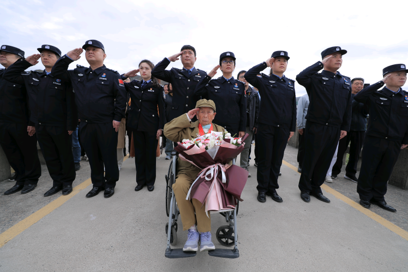 图们出入境边防检查站民警在国门前为百岁抗美援朝老兵庆生 以国旗为荣 以信仰为礼