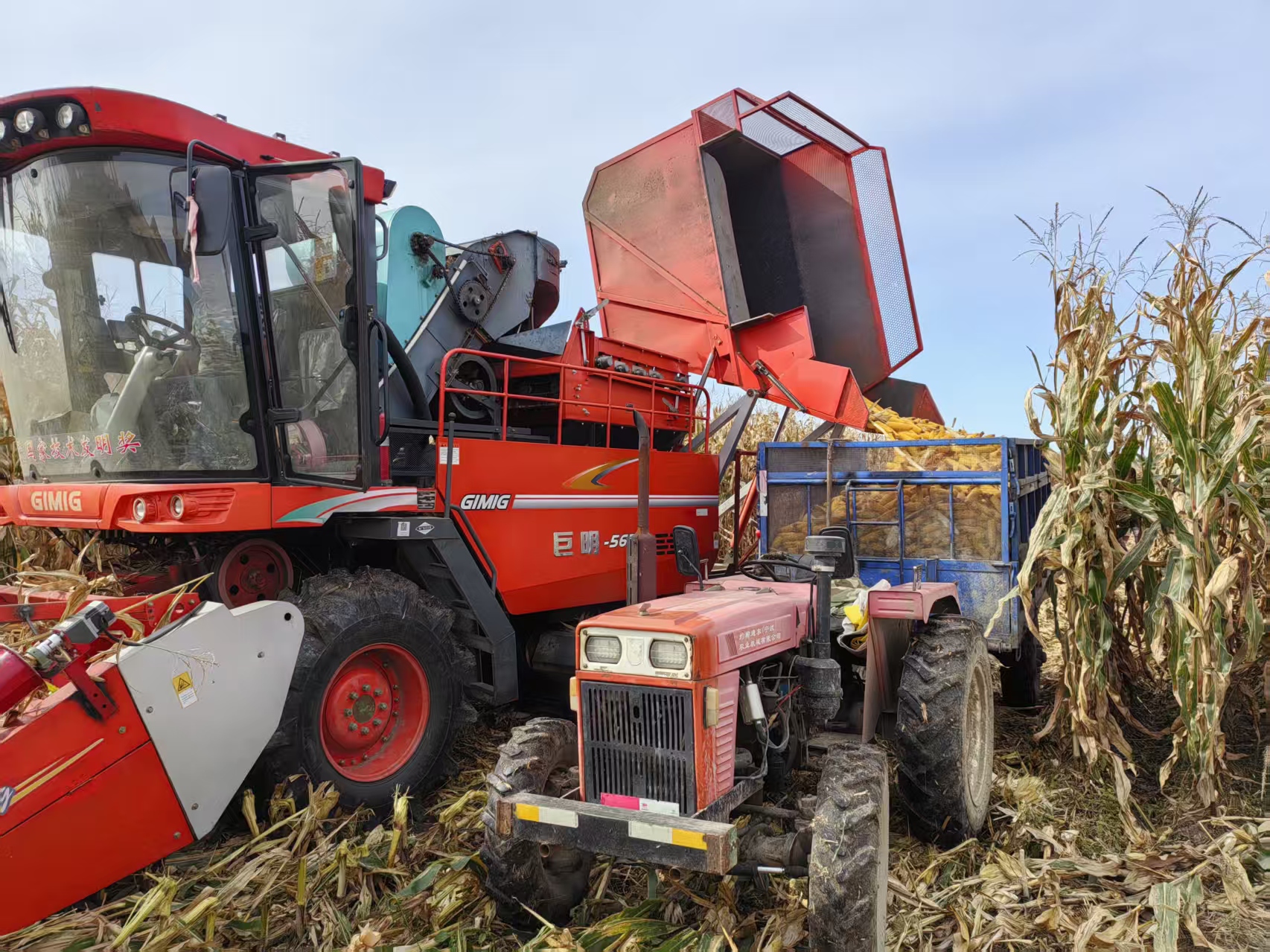 “机器早就检修完了。”张国振带着记者来到农场的农机停放区,只见几台大型联合收割机、运输车整齐地停放在那里,车身被擦拭得干干净净。“前几天又把所有农机都检修了一遍,连轮胎的气压都检查好了,就等下霜开镰收割。”