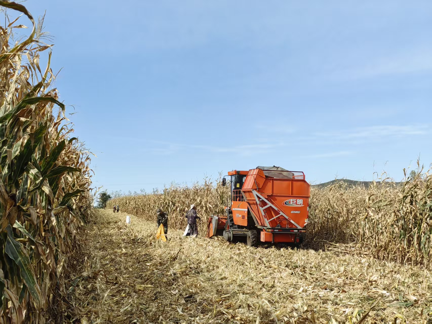 “以前收割,一个来回十分钟就完事,收割机开得快,效率也高。但今年,地里的玉米秆东倒西歪,机器只能慢慢走。”刘加军指着收割机的方向,记者顺着他的手势望去,联合收割机像一位小心翼翼的“拾荒者”,滚筒缓慢转动,尽量不漏过任何一个玉米棒。而在机器后方,四五个村民弯腰跟着,手里拿着编织袋,仔细捡拾着机器没收到的玉米棒,做到颗粒归仓。