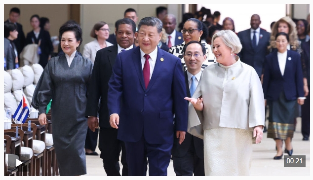 独家视频丨习近平和彭丽媛同出席全球妇女峰会的国际贵宾集体合影