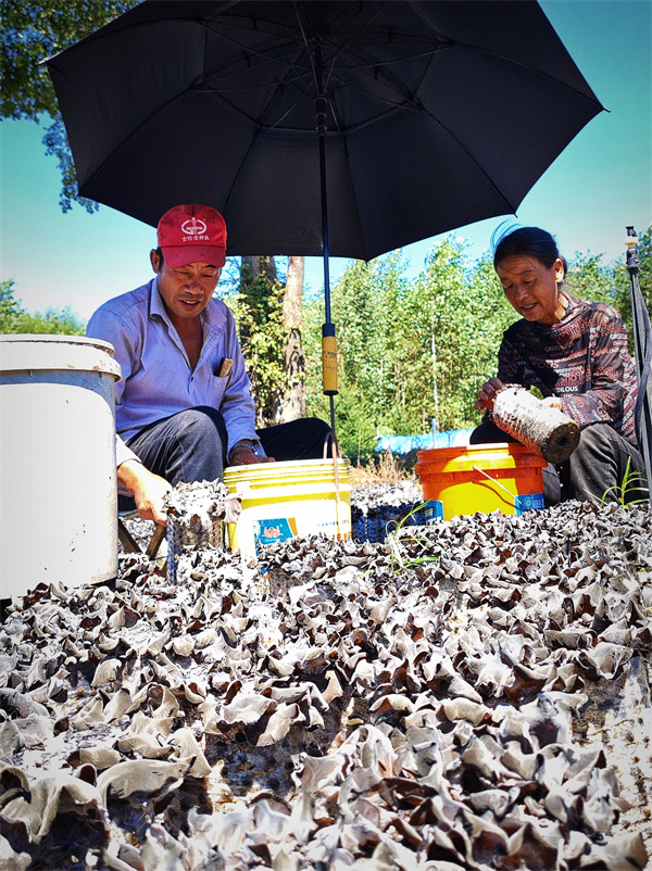 该厂负责人赵强说:“我们在吊袋棚式出耳管理方面有着极其成熟的经验,起到了技术推广的作用。我们采用一年两季的轮作模式,春出木耳秋出菇,提高了大棚的利用率,带动周边种植户采用吊袋种植木耳。现帮扶周边种植户年加工菌包400余万袋,每年可安排本镇闲置人员就业30余人,直接带动上下游黑木耳种植户40余户。”