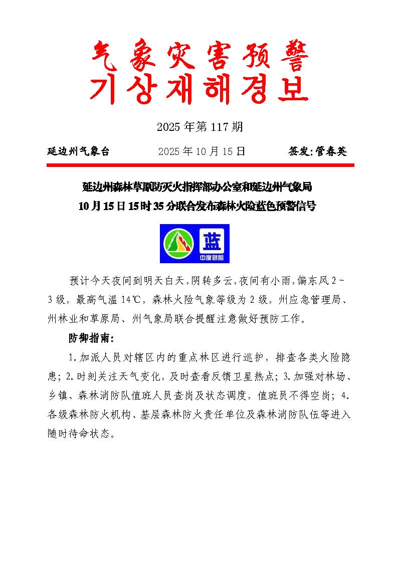 当前位置: 首页 > 社会 > 延边州发布森林火险蓝色预警信号