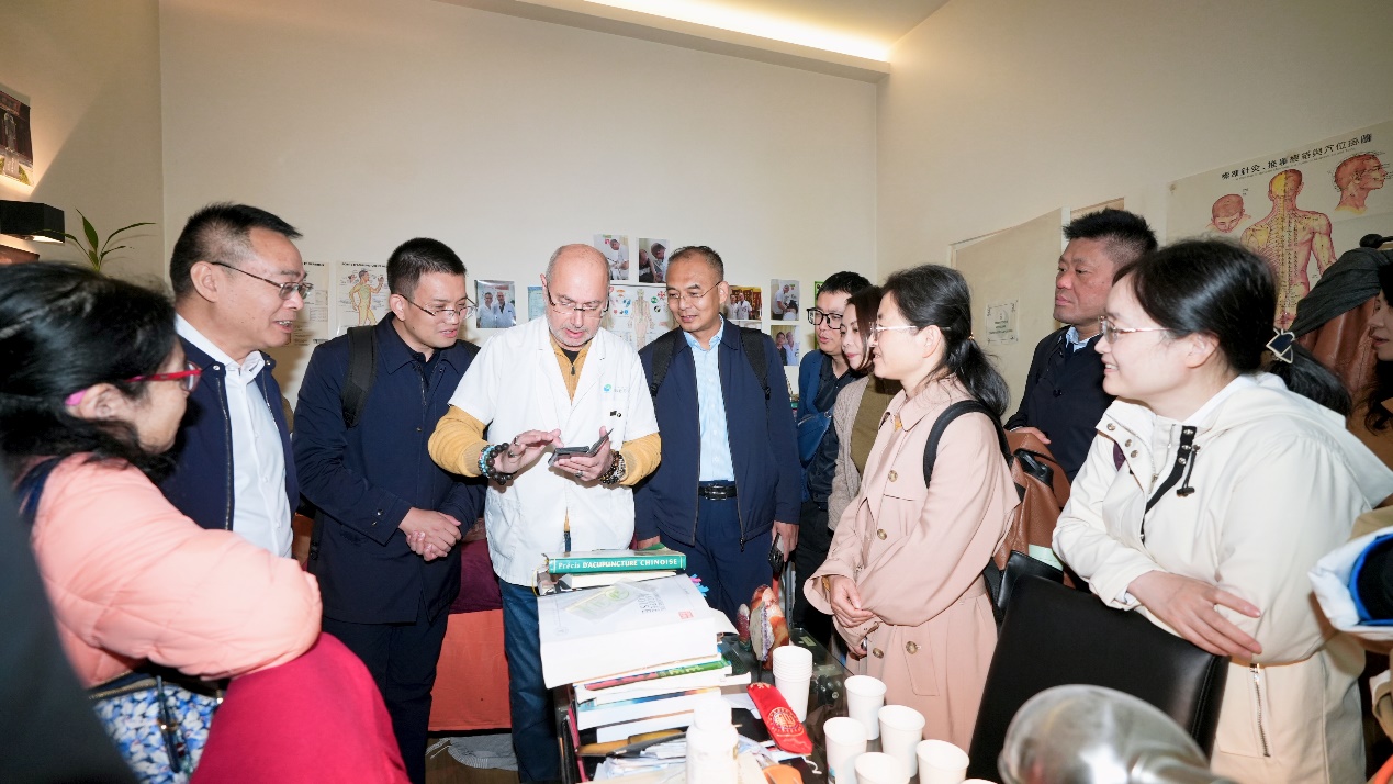 在法国,巴黎诺曼底街13号,有一家充满东方韵味的诊所。推门而入,浓郁的艾熏味道扑鼻而来,墙上悬挂着标准经络穴位图,诊室内除了常见的火罐、刮痧板,还有脉诊垫和中国茶具。这是法国本土中医师Dr. Chour(舒白山)精心营造的中医世界。2014年,他正式启程,远渡重洋来到上海中医药大学,开始系统学习中医理论与临床。2017年学成归国后,他在法国开设了自己的诊所,将原汁原味的中医理念和技术带回了家乡。“我认为,针灸和推拿在海外拥有最广阔的发展前景,因为它们能够直接作为有效的治疗手段,被当地民众快速接受和信赖。”