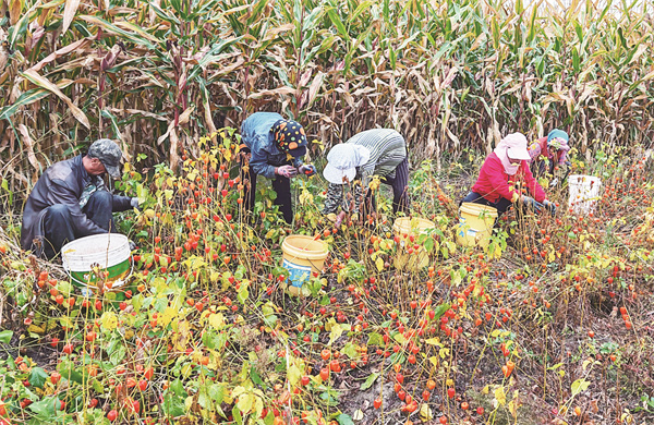 秋风送爽,硕果盈枝。眼下,安图县松江镇文昌村的农田里,橙红饱满的菇娘果缀满枝头,在翠绿叶子的映衬下分外夺目。农户们穿梭其间忙碌采摘,勾勒出一幅动人的丰收画卷。