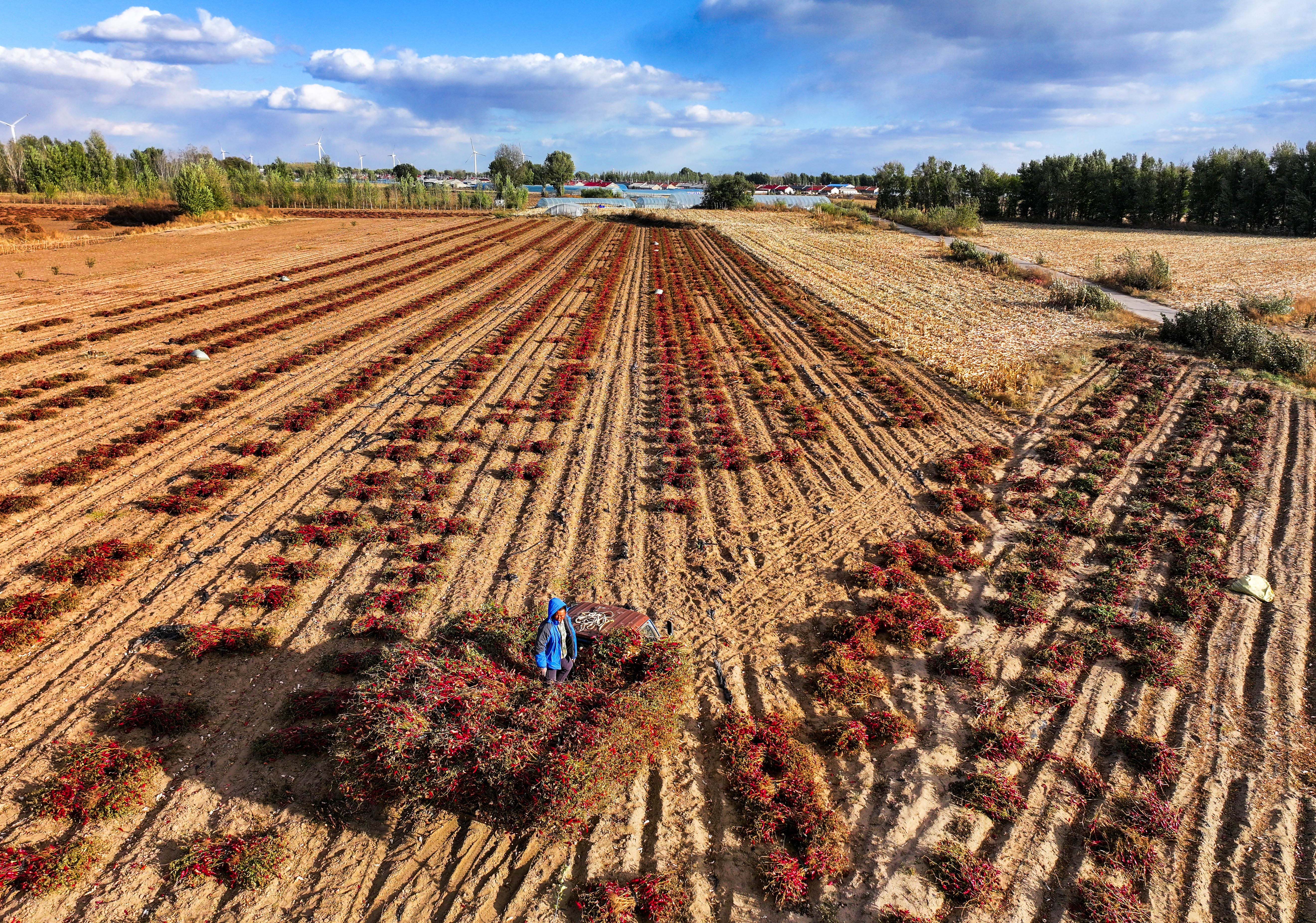 近日,内蒙古通辽市开鲁县迎来红干椒收获季。开鲁县享有“中国红干椒之都”之美誉,当地的红干椒皮红肉厚、品质优良,畅销国内外市场,近年来全县红干椒种植面积稳定在60万亩。