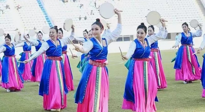 商贸的活力在赛场内外奔涌,文化的底蕴更为体育盛会注入了灵魂。各县(市)在比赛间隙争相开展的文化演出,如同一幅幅流动的民俗画卷。非遗展演中,龙鼓舞气势磅礴;民俗文艺节目里,农乐舞、长鼓舞表演精彩纷呈;歌舞《我爱你中国》《同心共筑中国梦》等节目,生动诠释了铸牢中华民族共同体意识的深刻内涵;“千人打打糕,万人共分享”的沉浸式活动更是让群众从旁观者变成了参与者,亲身体验到朝鲜族饮食文化的共享理念。累计超过30场、参演人员超1500人次的展演,让每一位踏入赛场的观众不仅为进球欢呼,更为延边独特的文化魅力所倾倒。
