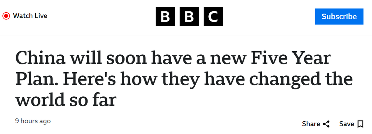 英国广播公司(BBC)网站报道称,中共二十届四中全会将奠定中国未来五年发展规划的基础,这是世界第二大经济体在2026年至2030年间将遵循的蓝图。历史证明,中国科学制定和接续实施的五年规划已经深刻重塑全球发展格局。