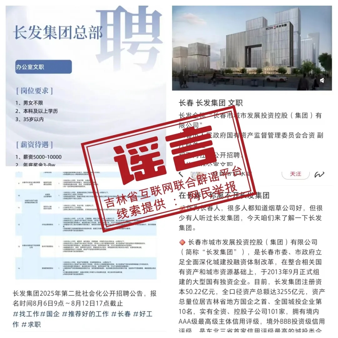 【吉林辟谣在线】长发集团发布关于防范虚假招聘信息的严正声明