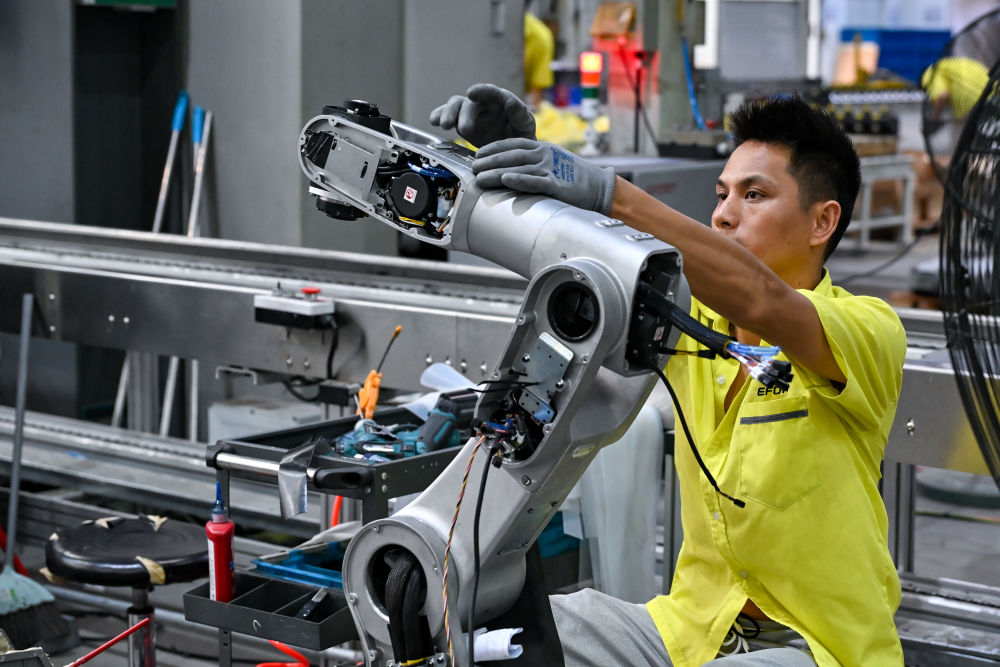 今年6月,在全球自动化领域盛会——慕尼黑国际机器人及自动化技术博览会上,不少国际客商围聚在中国企业展台,饶有兴趣地观看多款工业生产机械臂产品演示,深入了解智能机器人的一体化解决方案。埃夫特智能机器人股份有限公司董事长游玮说,公司的工业机器人应用广泛,受到玛莎拉蒂、宝马和大众等国际知名汽车制造商的青睐。