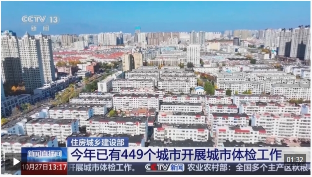 记者今天(10月27日)从住房城乡建设部获悉,今年全国已有449个城市开展城市体检工作,各地聚焦老旧街区改造、完整社区建设等领域积极开展专项体检,体检的广度和深度进一步拓展。