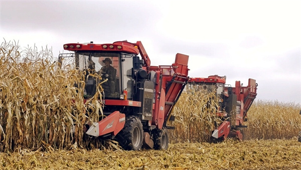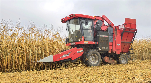 大石头镇永青村的田间地头一派繁忙景象,大型联合收割机正在忙碌作业,一棵棵玉米被割倒,金黄的玉米棒子从收割机的出粮口倾泻而下,装满了运粮车……敦化市联益农副产品供销合作联社理事长赵显清说:“今年我种植了1000公顷玉米,从10月初开始收割,全靠农机配套得好,现在已收割入库80%以上!”谈及秋收效率高的秘诀,他笑着说:“春天种玉米用的是五行免耕播种机,播种又快又匀;秋天收玉米就用这台配套的五行玉米联合收获机,从摘穗、剥皮到秸秆粉碎一气呵成,比传统人工收割快了好多倍。”