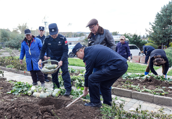采摘任务刚结束,民警们又马不停蹄赶往萝卜种植地,两两一组,挥锹挖坑、平整坑底,挖掘储菜坑10余个,掩埋萝卜百余斤。随后,他们再赴玉米地,掰下颗粒饱满的金黄玉米棒,用汗水与担当为秋收助力。“这些民警同志真是好样的,不仅守护我们的安全,还这么关心我们的生计!”村民李立敏老人连连称赞。