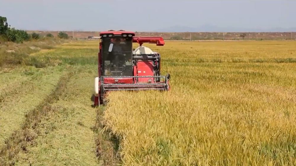 在吉林省延边朝鲜族自治州珲春市敬信镇圈河村,大型收割机在金色的稻田中穿梭,高效收割水稻。为全面提升秋收工作质量,珲春市大力推广秋收机械化作业,指导农民及时做好秋收机具检修维护,保障机具正常运转作业。