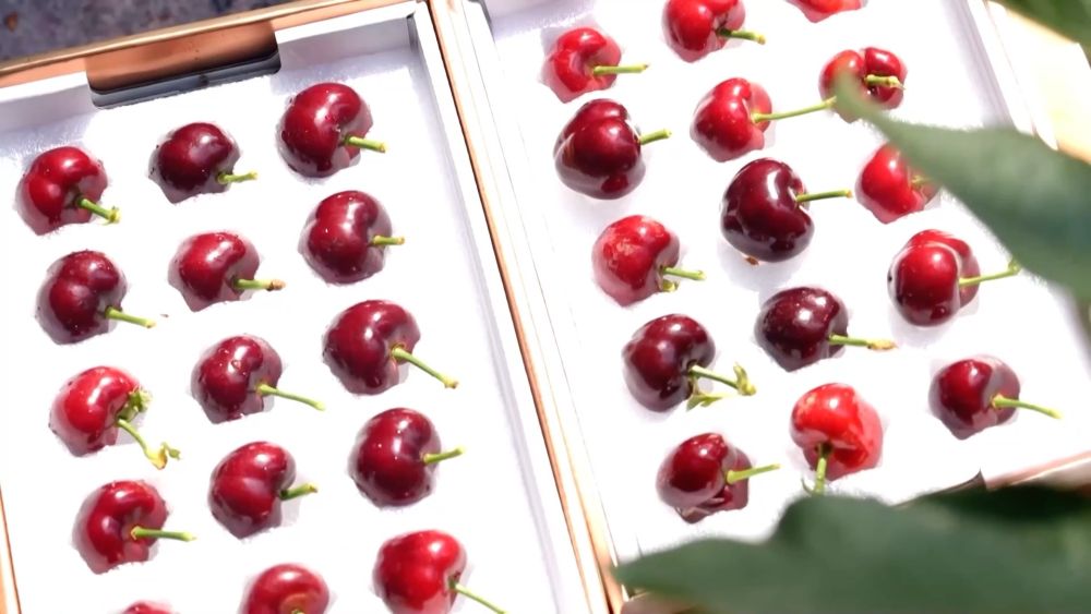 近日,山东省聊城市茌平区信发现代农业产业园的樱桃和草莓迎来成熟期,工人们忙着采摘、分拣、装箱,供应市场。