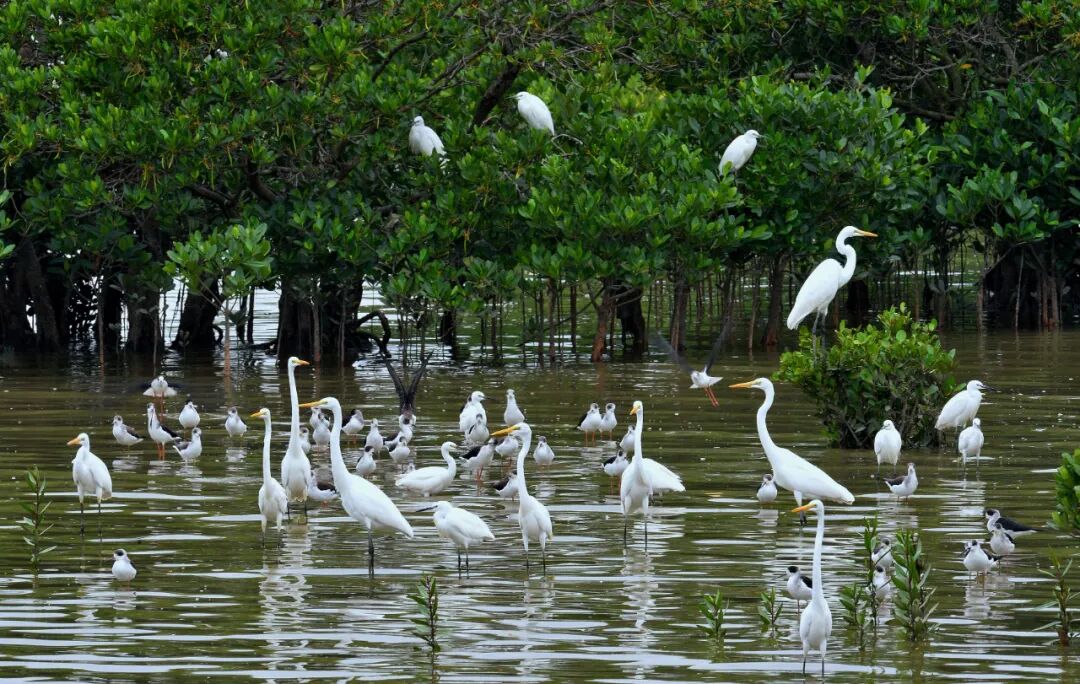 在福田红树林生态公园观赏候鸟