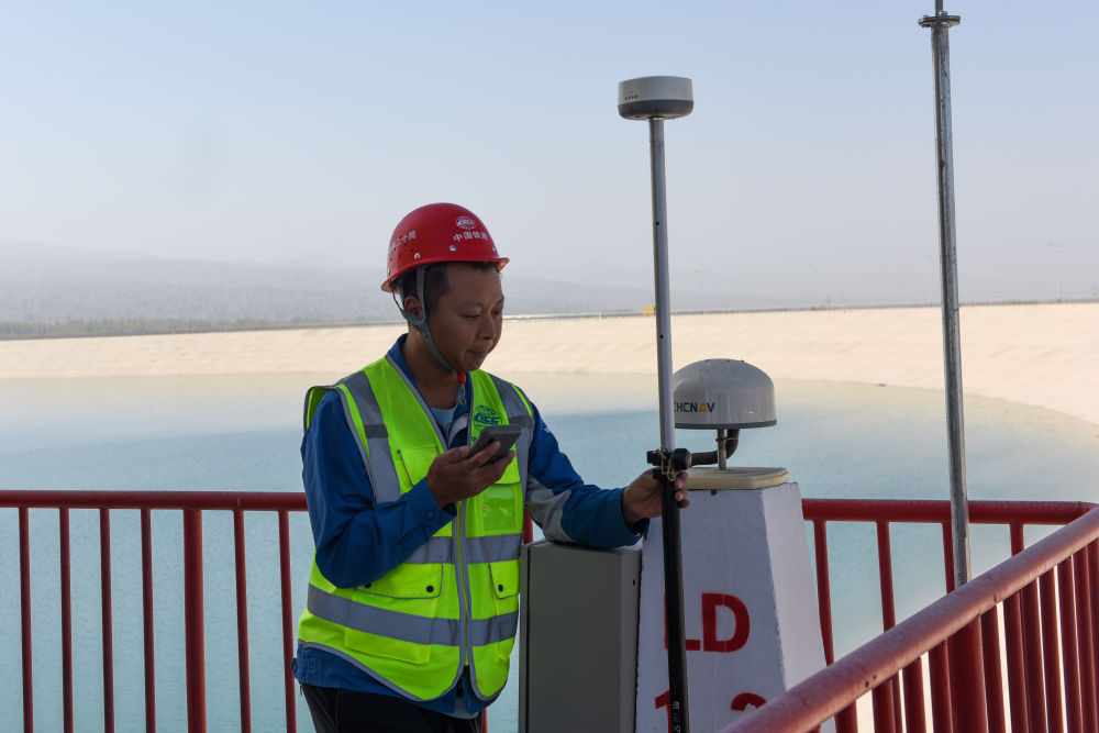 ↑ 11月1日,施工人员在奥吞勒克水库检查闸控系统设备试运行情况。