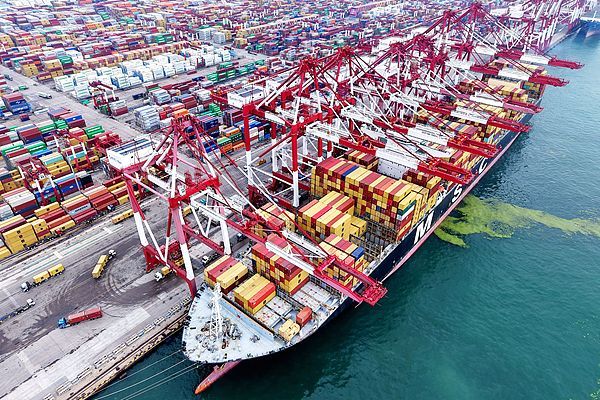 世界第四大港山东港口青岛港运输繁忙