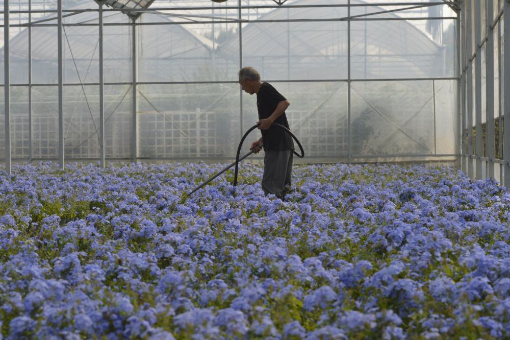 正值电商促销季,种植大棚成了天然直播间,主播正讲解手中花卉的特点。“下午仅仅开播半小时,销售额就突破了5000元。”直播间的工作人员介绍。