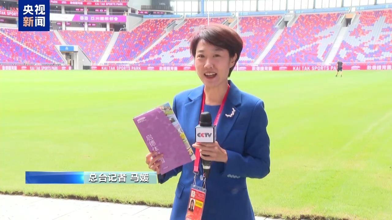 总台记者马媛:欢迎大家来到启德体育园,我刚刚从工作人员手里拿到了访客指南。所有来到现场的观众都会领到这样一个小册子,根据指南就可以精准定位您想去的地方了。首先要为大家隆重介绍的是这一块映入眼帘的大草坪。主场馆采用了灵活的草坪转换系统,最底层是混凝土,然后是人造草,再上一层是保护板,保护板上面是真草。所以,视赛事、活动的需要,可灵活安排场地。