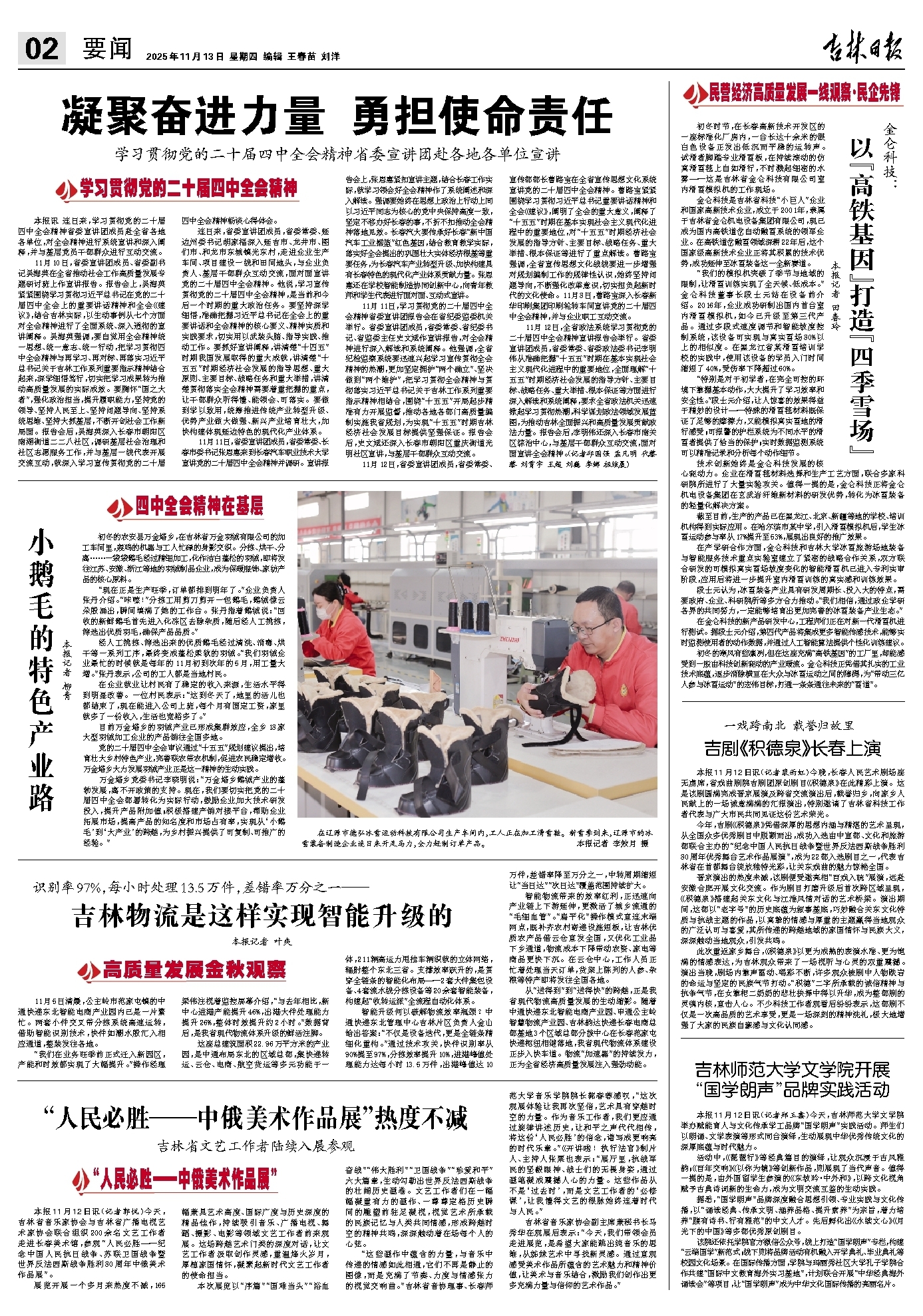 11月12日,省委宣讲团成员,省委常委、宣传部部长曹路宝在全省宣传思想文化系统宣讲党的二十届四中全会精神。曹路宝紧紧围绕学习贯彻习近平总书记重要讲话精神和全会《建议》,阐明了全会的重大意义,阐释了“十五五”时期在基本实现社会主义现代化进程中的重要地位,对“十五五”时期经济社会发展的指导方针、主要目标、战略任务、重大举措、根本保证等进行了重点解读。曹路宝强调,全省宣传思想文化战线要进一步增强对规划编制工作的规律性认识,始终坚持问题导向,不断强化改革意识,切实担负起新时代的文化使命。11月8日,曹路宝深入长春新华印刷集团印刷轮转车间宣讲党的二十届四中全会精神,并与企业职工互动交流。