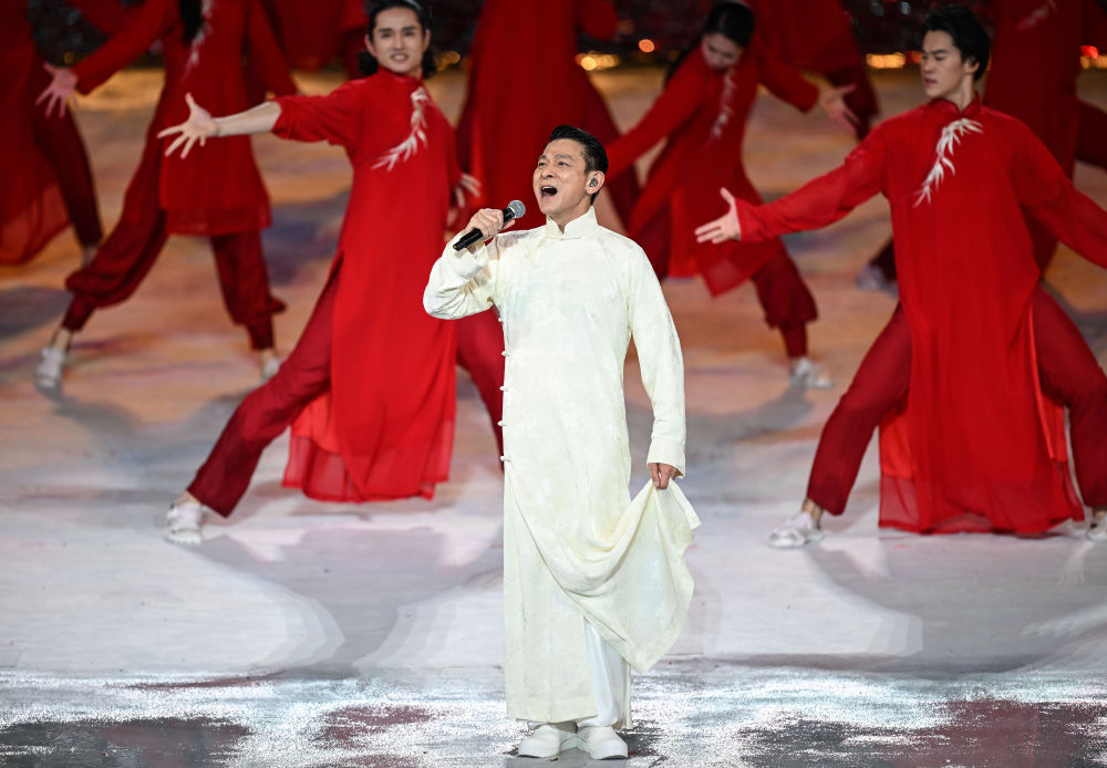 刘德华身着白色唐装,压轴唱响熟悉的旋律,让多少人梦回1997。那一年,为香港回归创作的《中国人》风靡全国。
