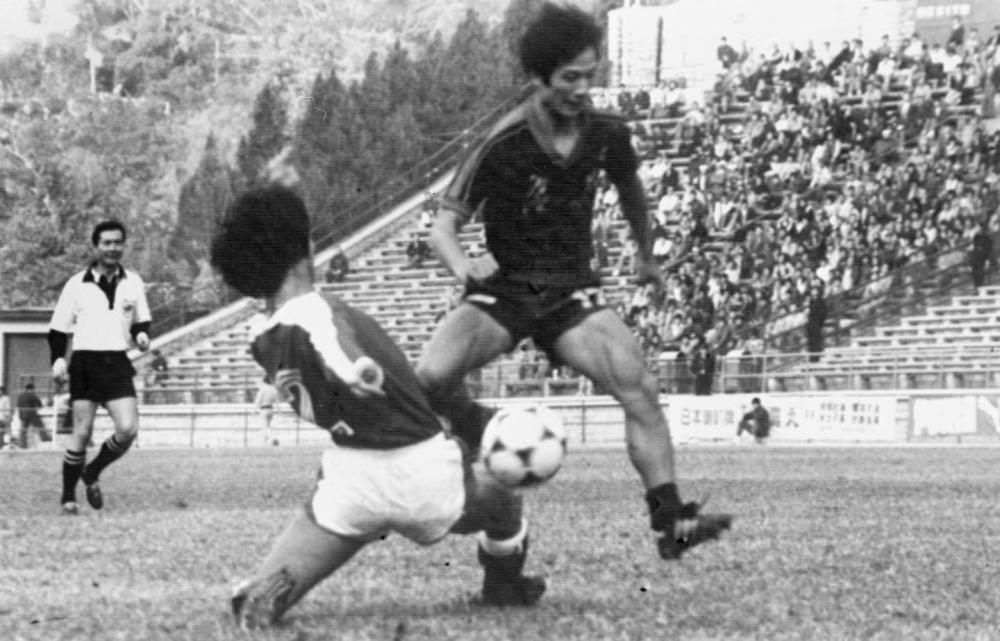 1984年元旦,第六届省港杯足球赛第一回合比赛在香港政府大球场举行,广东队以1:0取胜。图为广东队古广明带球突破对方后卫。新华社记者 黄本强 摄