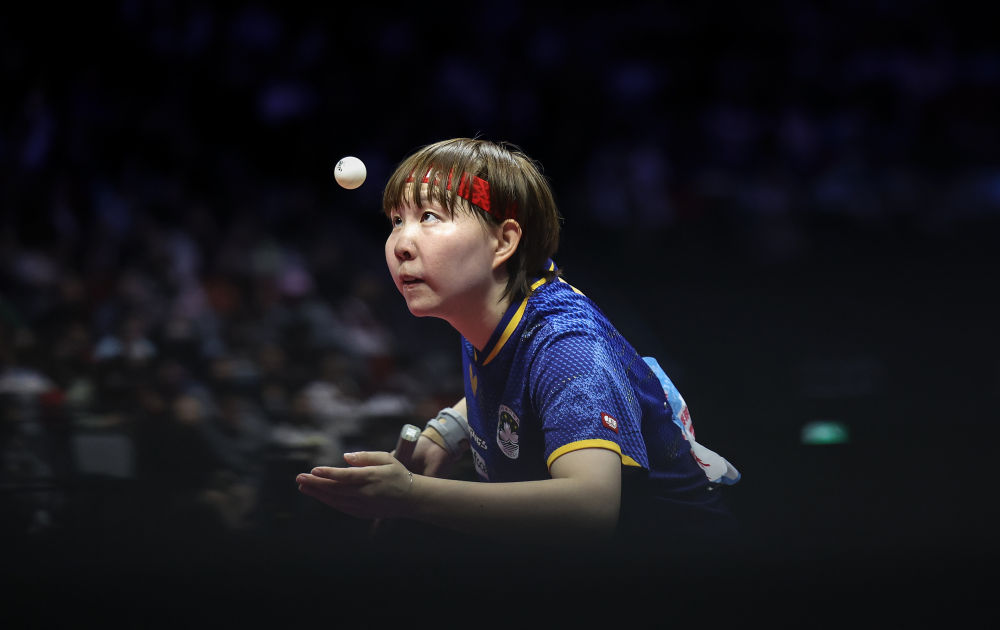 11月16日,澳门队选手朱雨玲在比赛中发球。新华社记者 陈斌 摄