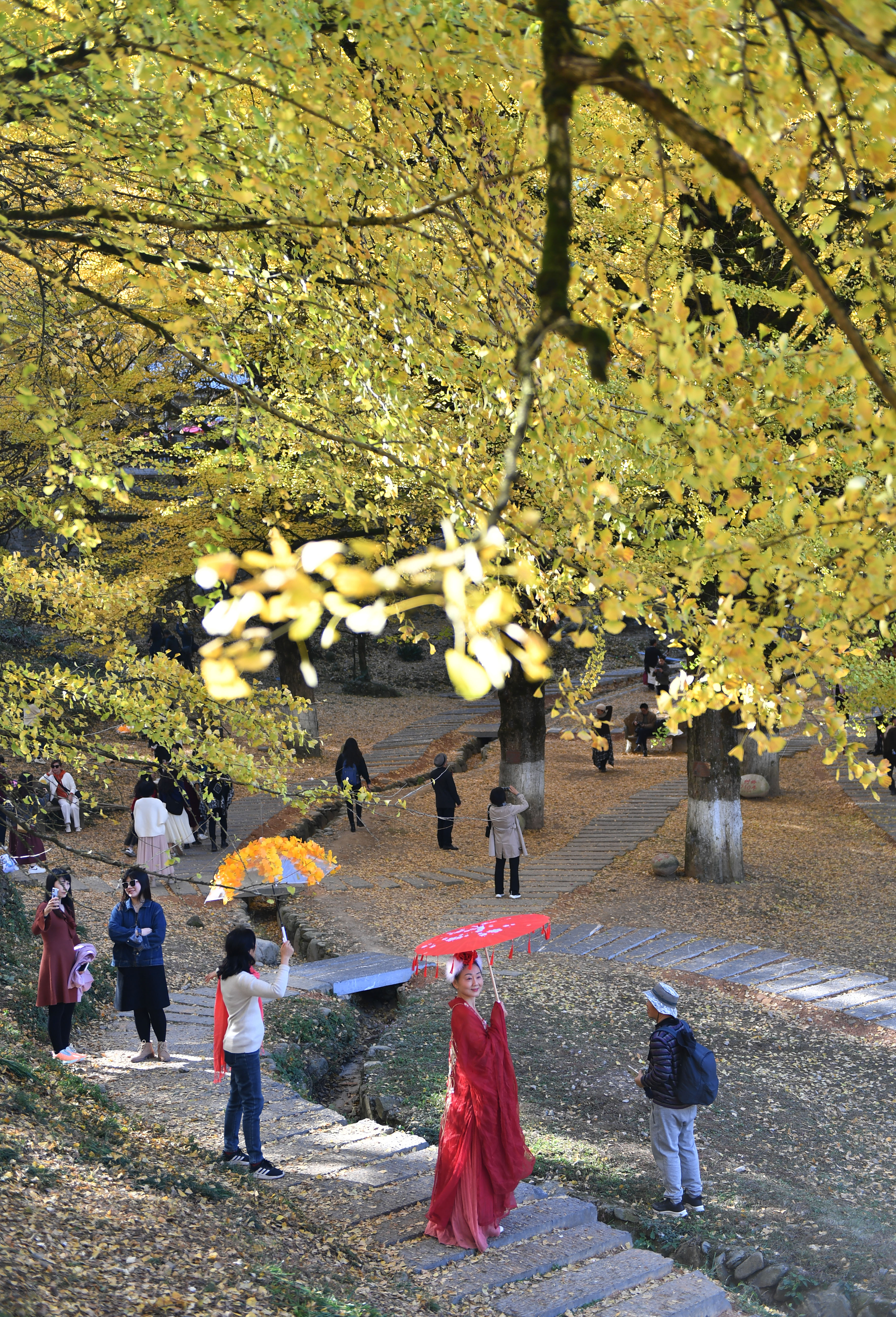 近日,湖南省永州市双牌县茶林镇桐子坳村的3000多棵银杏树渐次泛黄,灿烂如金,吸引大量游客观赏游览。近年来,双牌县积极推动“银杏经济”,发展特色旅游项目,带动当地村民增收致富。