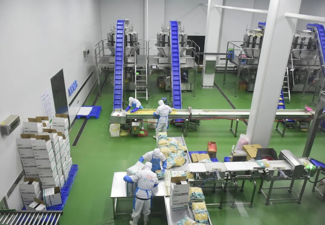 作为集研发、种植、仓储、加工、销售于一体的食品全产业链企业,公司配备了5吨/小时全自动化油炸薯条生产线和5吨/小时全自动化速冻蔬菜生产线。高速运转的设备、娴熟忙碌的工人,显示出公司强大的生产能力。今年,该公司已生产法式薯条1.2万吨、毛豆3500吨、红薯条1000吨、南瓜800吨,累计实现产值8000万元。项目全面投产达效后,预计年产值可达4.6亿元,税收3000万元,带动就业320人。
