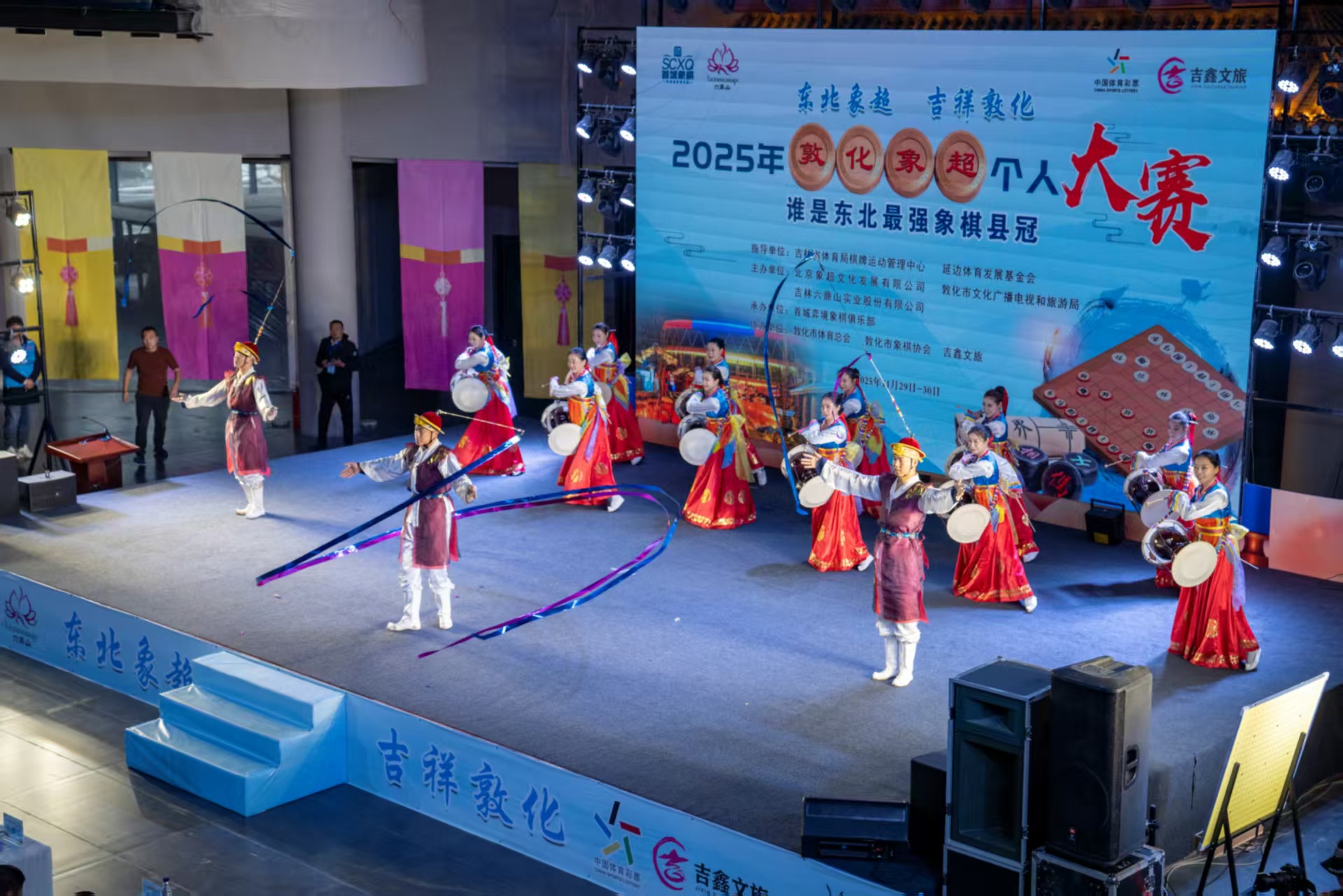 为做好赛事服务保障,敦化市有关部门在主赛场——中成村圆鼓楼周边的休闲区域,精心准备了打糕、煎饼、米酒、明太鱼、鱿鱼丝、灵芝水等朝鲜族特色美食与敦化本土风味小吃,让棋手与观众品尝舌尖美味,在浓郁烟火气中感受到敦化美食文化的魅力。敦化市文化馆演员带来的本土风情表演,歌舞相融、韵味悠长,传递着以棋会友的欢庆喜悦,让传统文脉、民族风采与象超赛事的竞技热忱在舞台上交融绽放,为这场棋坛盛事增添了浓厚的文化底蕴与人文温度。