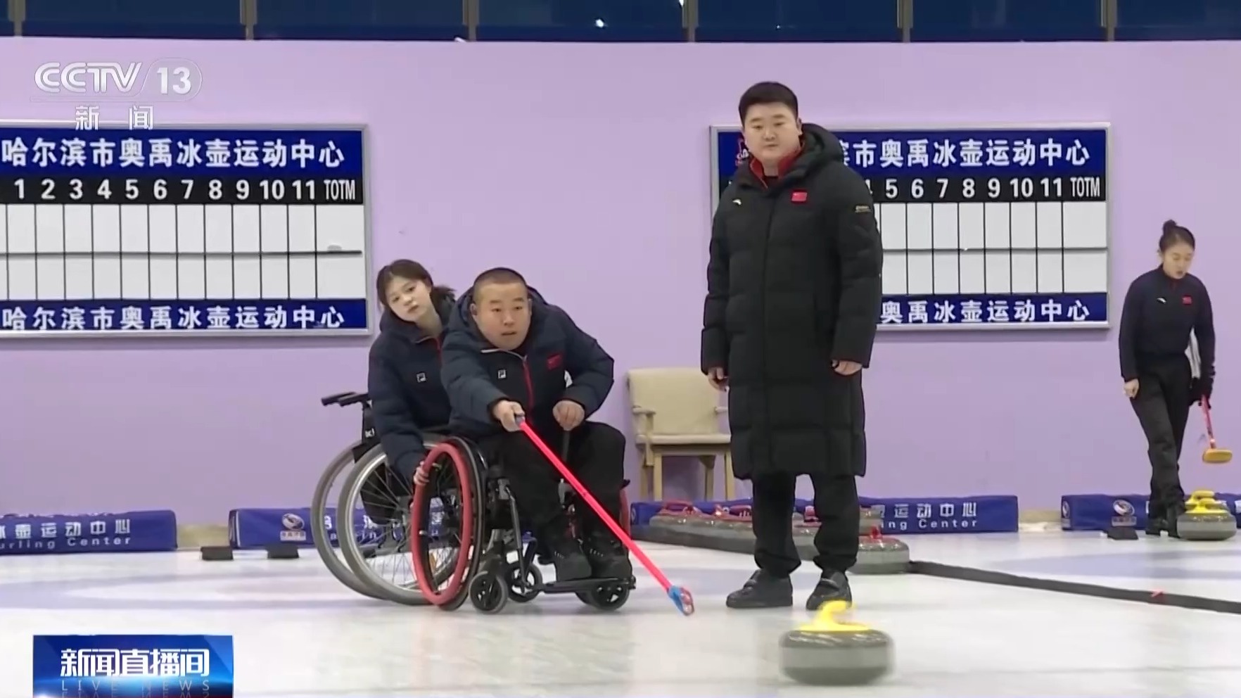 冬日的哈尔滨奥禹冰壶运动中心,训练馆里热气腾腾。黑龙江省轮椅冰壶队、聋人冰壶队的队员们正挥汗备战2026年全国锦标赛。