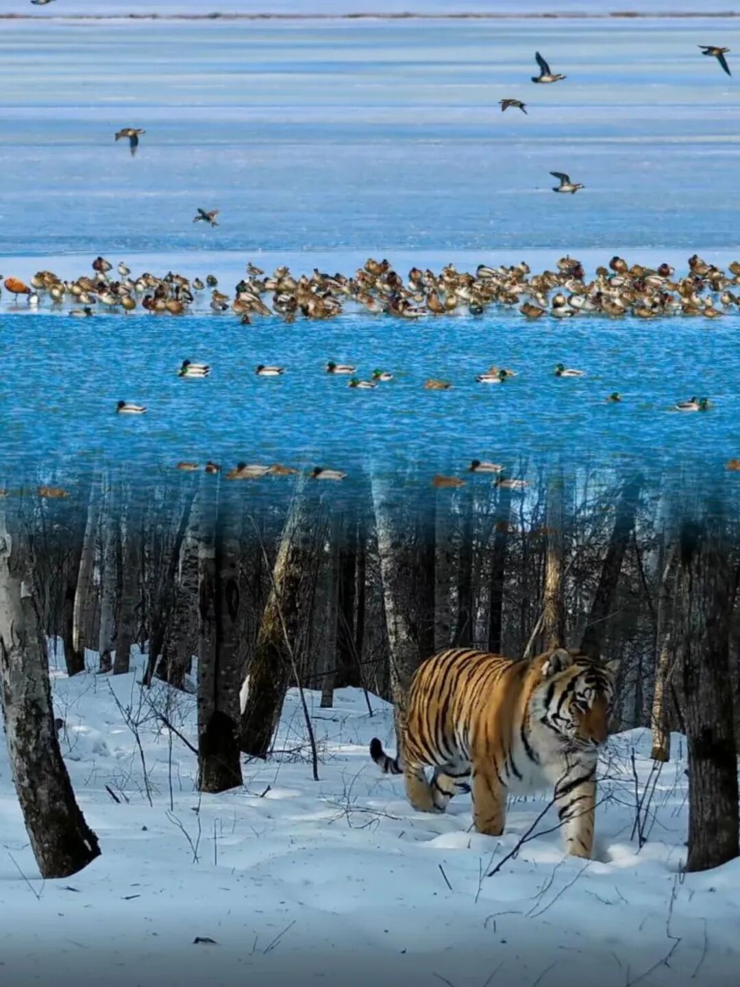 东北虎豹公园里,虎啸山林,豹跃岩间,鹿鸣浅草。西部的莫莫格湿地与二龙涛河畔,白鹤翩跹,候鸟云集。松花湖上,丰满大坝横卧碧波,江水蜿蜒流淌,冬日里,雾凇缀满枝头,仿佛童话世界。广阔的查干湖上,冬捕的序幕正悄然酝酿——即将上演冰湖腾鱼、马嘶人欢的壮阔景象。