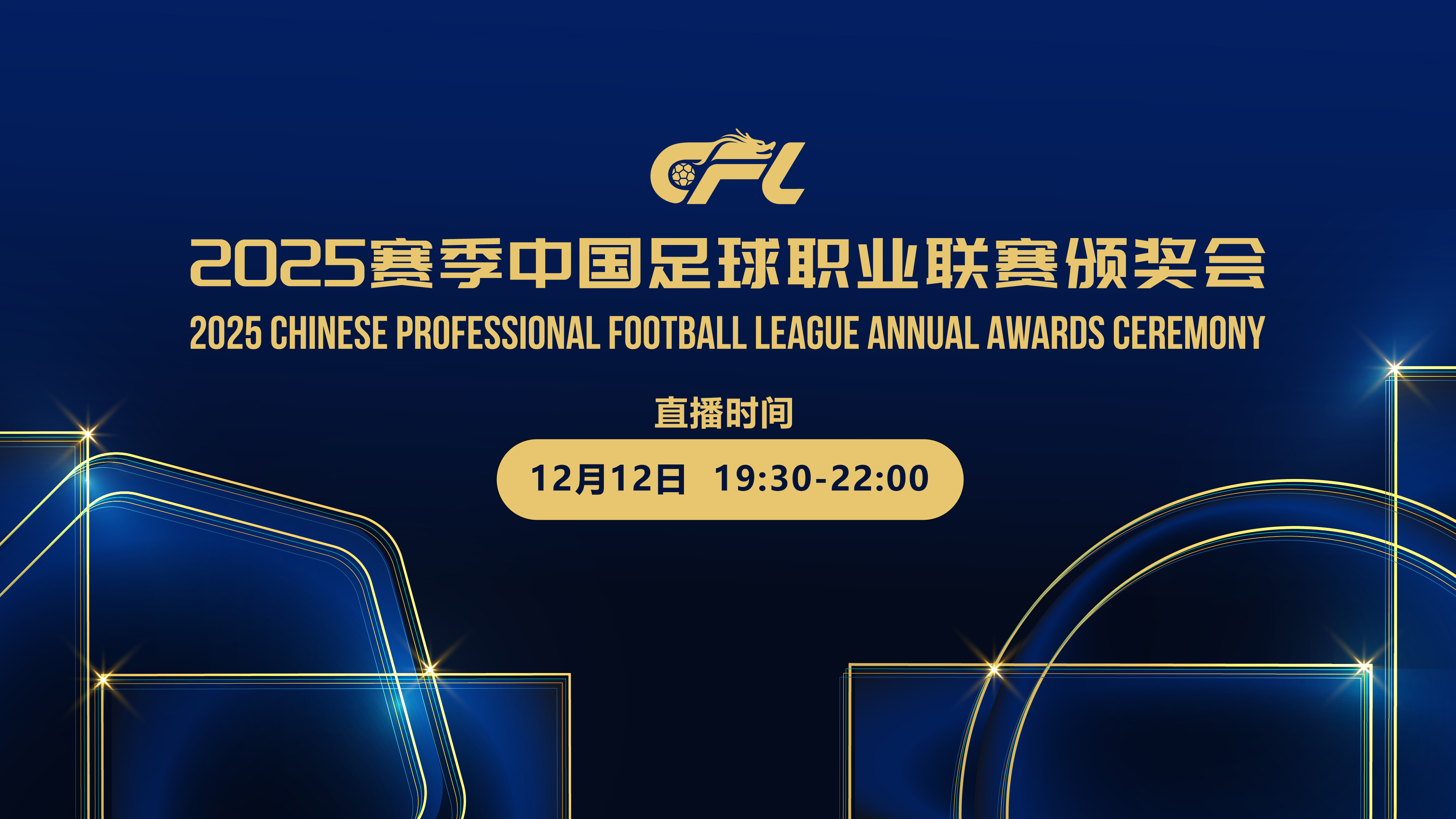 时光定格拼搏瞬间,荣光铭刻奋进足迹。2025赛季中国足球职业联赛已圆满落幕。期间,球市火爆、新星崛起、数据向好,书写了中国职业足球的全新篇章。12月12日19:30-22:00,年度荣耀盛典——2025赛季中国足球职业联赛颁奖会正式启幕,延边广播电视台网站及客户端将全程直播这场足球盛宴,邀你共同见证高光时刻。