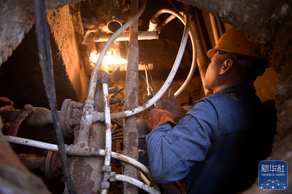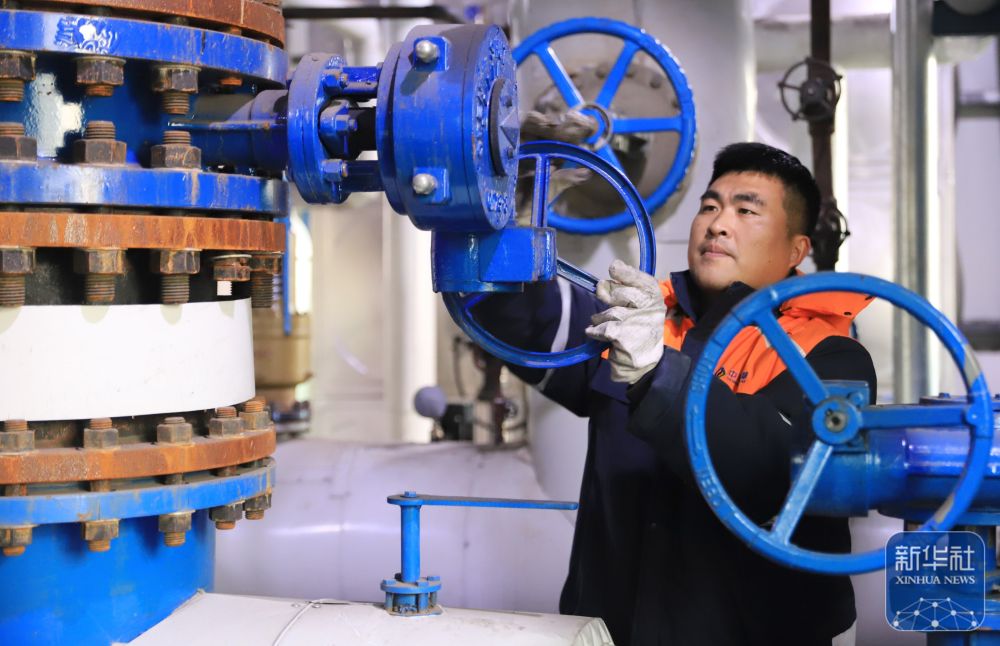 ↑ 12月10日,河南省焦作市温县一家热力公司的员工在巡检调试热力设备。新华社发(徐宏星摄)