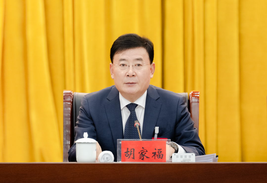 州委常委会主持会议。省委常委、州委书记胡家福讲话。