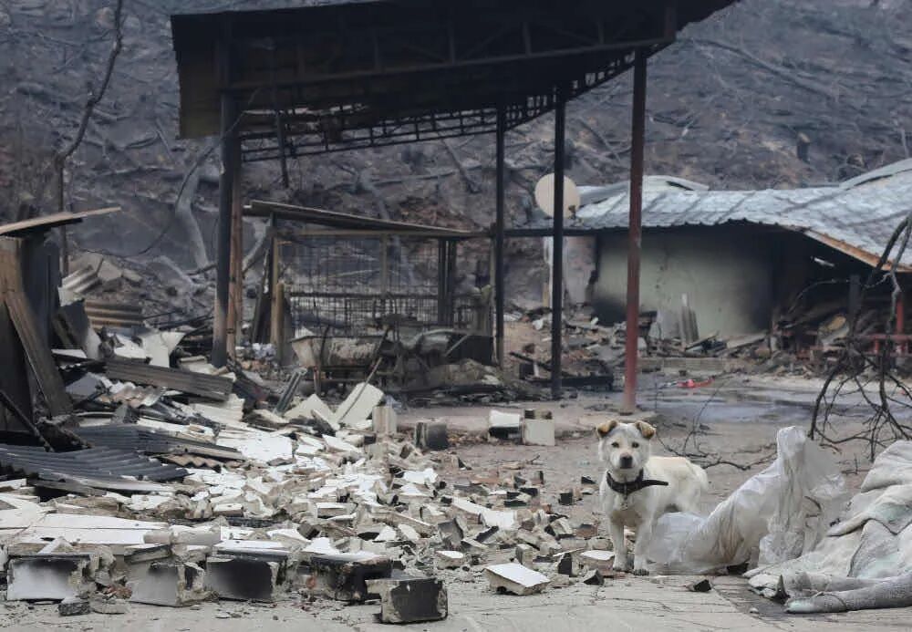 今年3月,韩国南部突发严重山火,造成20余人死亡,成为近年来韩国最惨痛的一次山火灾难。在受灾最严重的安东市,我走进一处被烧成灰烬的民房废墟取景拍摄,焦黑的梁柱、坍塌的墙体间,空气里仍残留着烟火的气味。一只无家可归的小狗在废墟中围着我不停转圈,用一种近乎乞求的目光望着我的镜头,似乎把突然出现的我,当成了唯一可能的救援。那一刻我意识到,山火之后,无处可去的,并不只有失去家园的人们,还有这些沉默,却同样被命运推到废墟边缘的生命。@泡菜国小妖