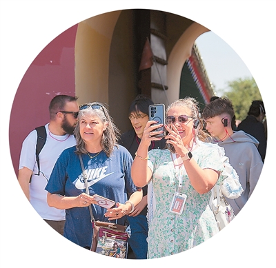 5月1日,来自澳大利亚的游客在北京天坛公园游览。