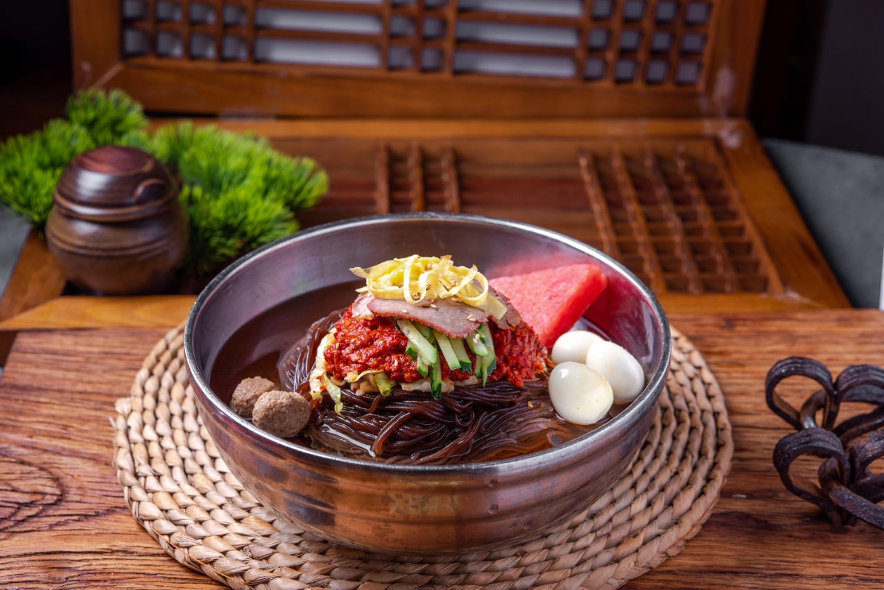 母子俩都清楚,饭店要活下去,核心还得靠产品。作为朝鲜族冷面世家,他们把希望寄托在祖传的冷面技艺上。“冷面是朝鲜族的‘长寿面’,藏着咱们祖辈的生活智慧,不能丢。”高凤烈说,他们没有急于创新,反而沉下心来钻研传统:原料必须选长白山脚下的优质荞麦,搭配图们江畔的天然泉水,这样做出来的面条才爽滑有韧性;汤底要用延边黄牛肉和牛骨慢火熬足八小时,撇净浮油后用冰块激出鲜味儿,酸甜咸辣的比例得拿捏得恰到好处。靠着这份对味道的执着,“金达莱冷面”慢慢打出了名气,不仅还清了债务,还在1997年拿下了“中华名小吃”的称号。