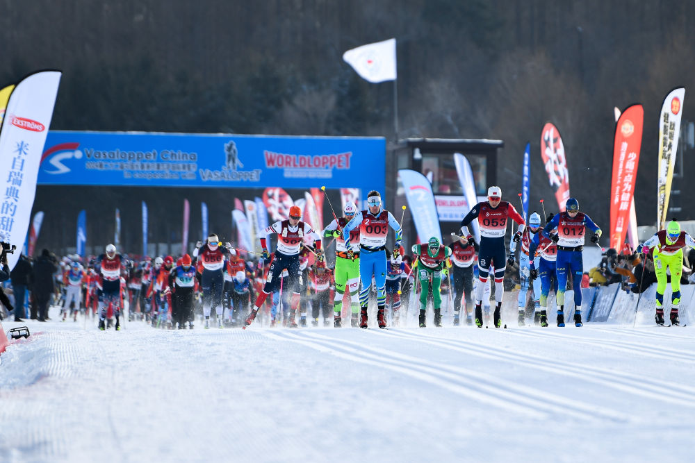 1月4日,参赛选手在第22届中国长春净月潭瓦萨国际滑雪节比赛中出发。