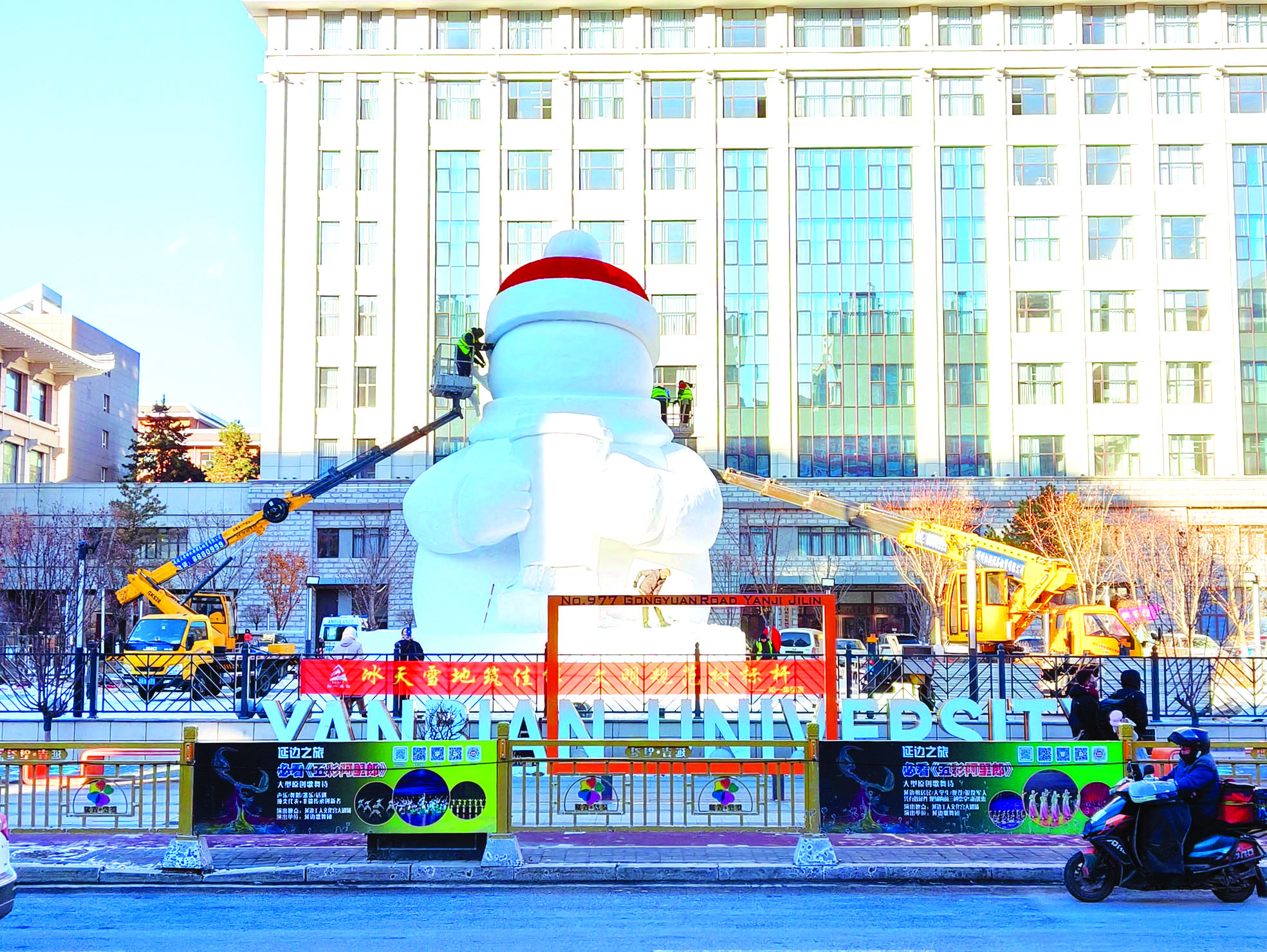 目前,施工已进入紧张的冲刺阶段。31日起,这个憨态可掬的网红雪人将正式矗立在延吉街头,以冰雪之名,传递温暖与欢乐,迎接每一位到来的游客。