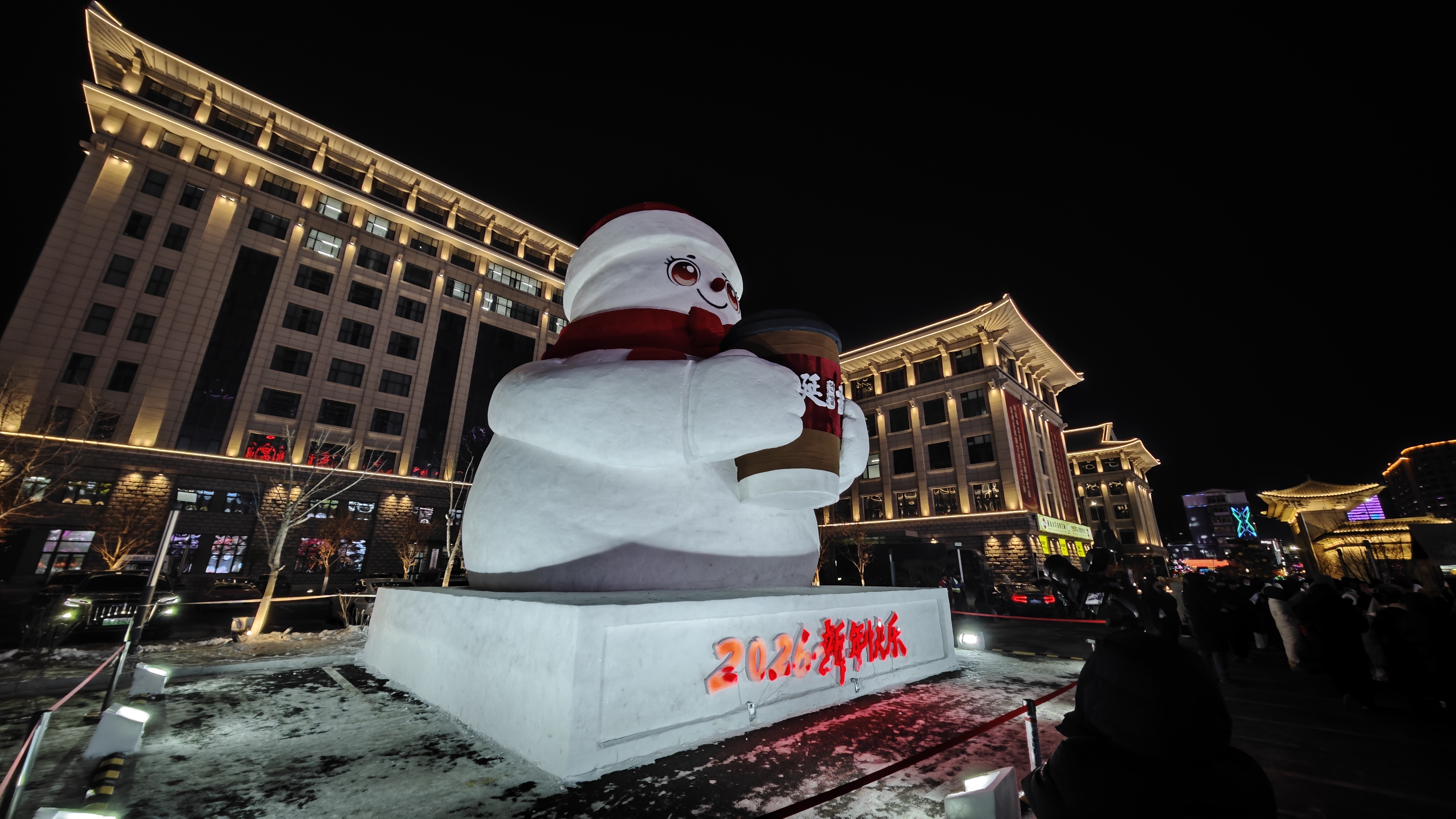 雪砌萌趣地标 情暖边城冬韵 延吉网红雪人正式亮相